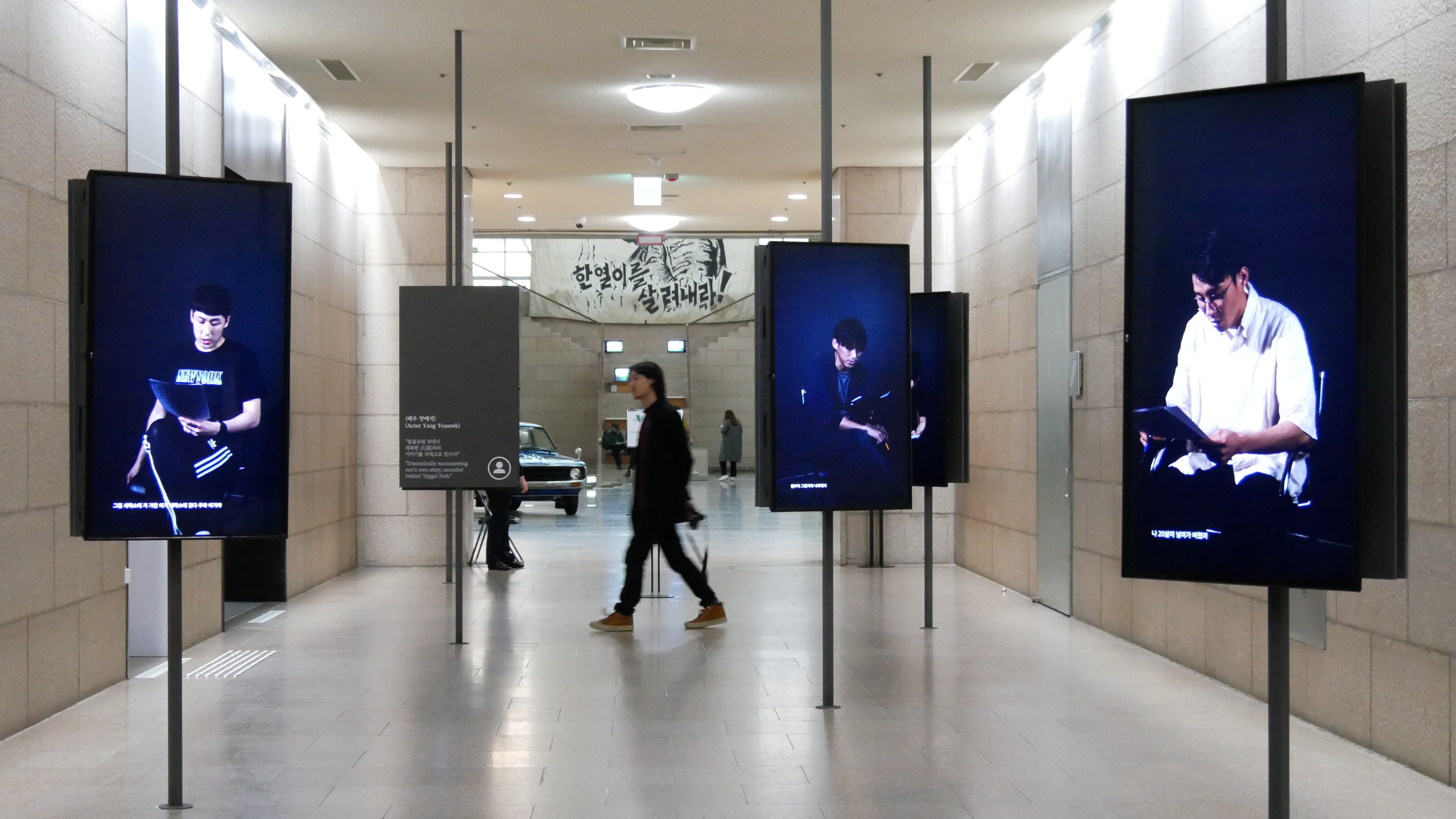 2부에서는 비디오 아트를 중심으로 사람들의 목소리를 담았는데요. 전체적으로 비디오 아트를 통해서 목소리를 전달했는데요. 제 느낌에는 1부보다는 2부에서 더 그런 느낌이 강하게 느껴졌습니다. 그리고 중간 중간에 작은 영화관 같은 공간이 있고, 15분~30분 사이의 영상이 끊임없이 재생되고 있습니다. 마치 작은 방에서 다큐멘터리를 보는 느낌이였습니다. 대부분 영상에 나오는 분들은 우리 주변에 있는 분들에 대한 아주 가까운 이야기였습니다. 특히 저희 부모님 세대들이 오시면 아주 공감되는 이야기가 많았을 것 같네요.