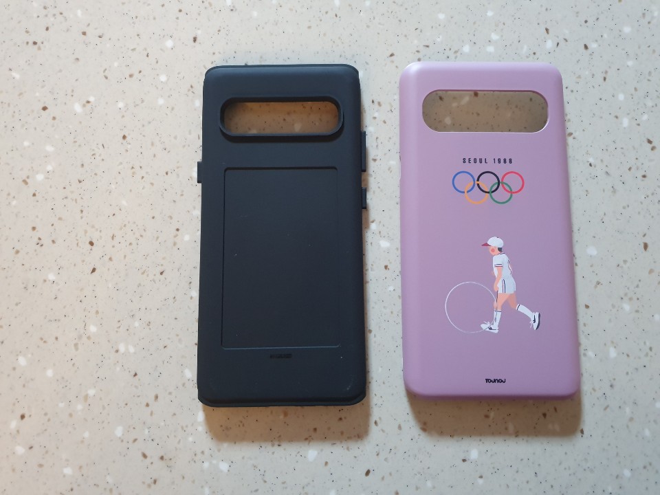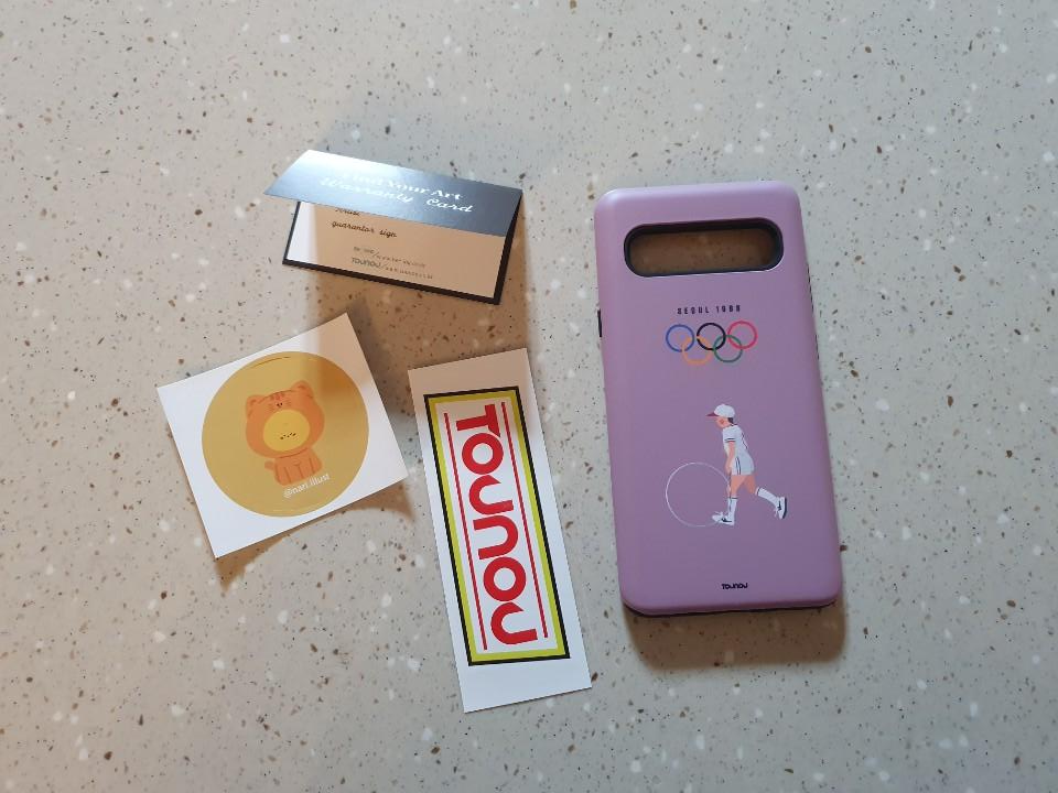 실제 핸드폰을 끼고 사진을 찍어봤는데요. 정말 이뻐요. 앞에는 깔끔하게 딱 떨어지고, 뒤에는 88올림픽의 갬성이 느껴지는게 정말 좋았습니다. 한가지 하드 케이스 재질이 너무 미끈미끈한 재질이라서 핸드폰을 침대에 누어서 사용하기 살짝 불편한감이 있었습니다. 원래는 그립톡을 사용하는데, 그립톡 없이 사용하려기까 조금 불편하긴 하네요. 이건 뭐 익숙해지겠죠? 그리고 이건 갤럭시 S10 5G의 특징 때문에 불편한건데요. 카메라 홈이 가로로 길기 때문에 케이스에 그대로 구멍이 있습니다. 그런데 핸드폰을 들고 다닐때 자연스럽게 저 홈으로 손가락이 들어가게 됩니다. 그러면 핸드폰 카메라에 손자국이 생기고 사진찍을때마다 렌즈를 한번 닦아야하는 문제가 있더라고요. 이 부분은 제가 살짝 커스텀을 해서 사용해볼까 생각중입니다. ㅋㅋ 예를 들면 카메라 덮개를 만든다던지 ㅋㅋ