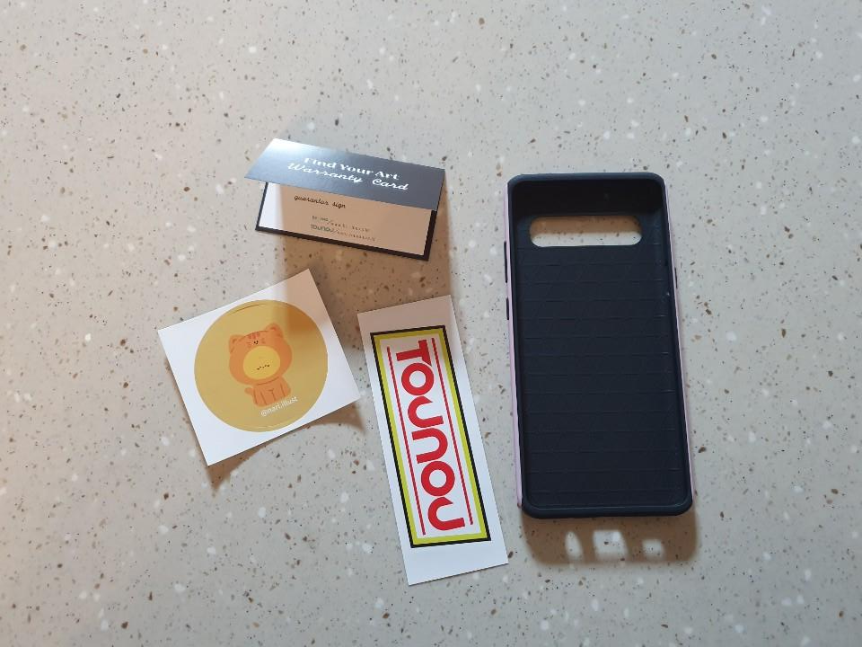 택배를 받았는데요. 주문한지 하루만에 배송이 왔습니다. 정말 빨라왔네요. 포장지도 정말 독특하게 생겼습니다. 내용물은 이렇게 들어있습니다. 보증서같이 생긴 명함? 명함같이 생긴 보증서? ㅋㅋ 이런게 하나 있고, 스티커가 2개 있습니다. 그리고 핸드폰 케이스가 있습니다. 케이스는 따로 더 포장이 되어있지 않고, 딱 이렇게 들어있었습니다. 아무래도 환경보호를 위해서 종이 포장지를 많이 사용하는데 그런 의미가 있지 않나 싶네요.