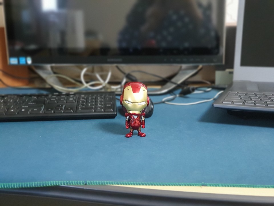 이건 제가 갖고 있는 카메라로 찍은 사진입니다. 정확히 아이언맨에 포커스가 맞고 나머지 주변 배경이 흐려진 것을 볼 수 있죠? 제가 핸드폰 사진찍기가 미숙한 것일 수 있지만, 이런 느낌의 사진을 핸드폰으로 찍을 수 있을지 잘 모르겠네요. 하지만 한가지 확실한 것은 휴대성은 정말 좋아요. 평소 특별한 감성사진을 찍는게 아니고 데일리 스냅샷 위주로 사진을 찍기 원하신다면, 이번 카메라 렌즈 3개가 들어간 것은 장점이 될 것 같아요.