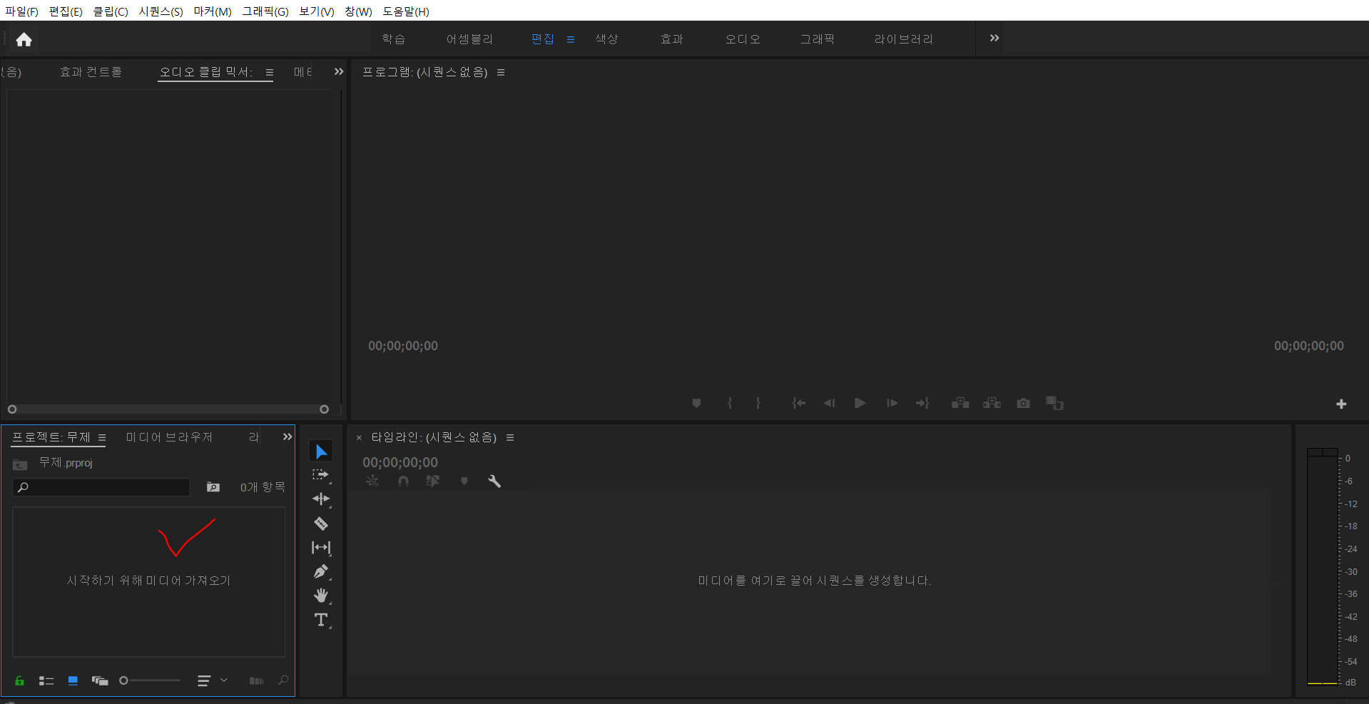 우선 어도비 프리미어 프로를 실행해주세요.