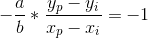 그렇다면 직선의 방정식의 기울기를 구해보도록 하겠습니다. 해당 직선을 y를 제외하고 나머지를 우변으로 이항하고 b로 나누면 다음과 같은 방정식이 됩니다.