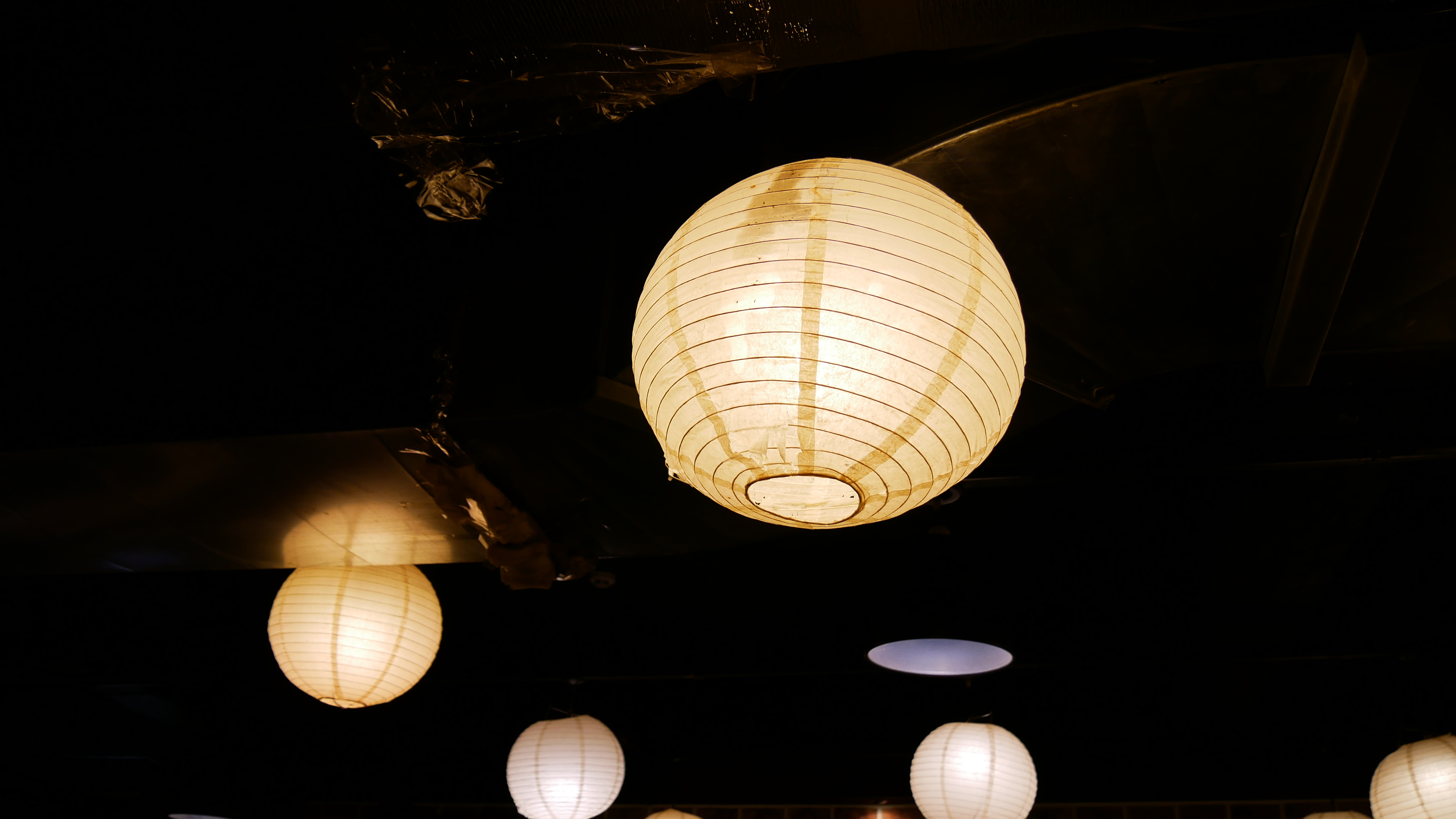입구에서부터 백종원님의 그림이 환영을 해주고 있습니다. 그리고 내부 조명은 특이한 조명을 사용하고 있습니다.