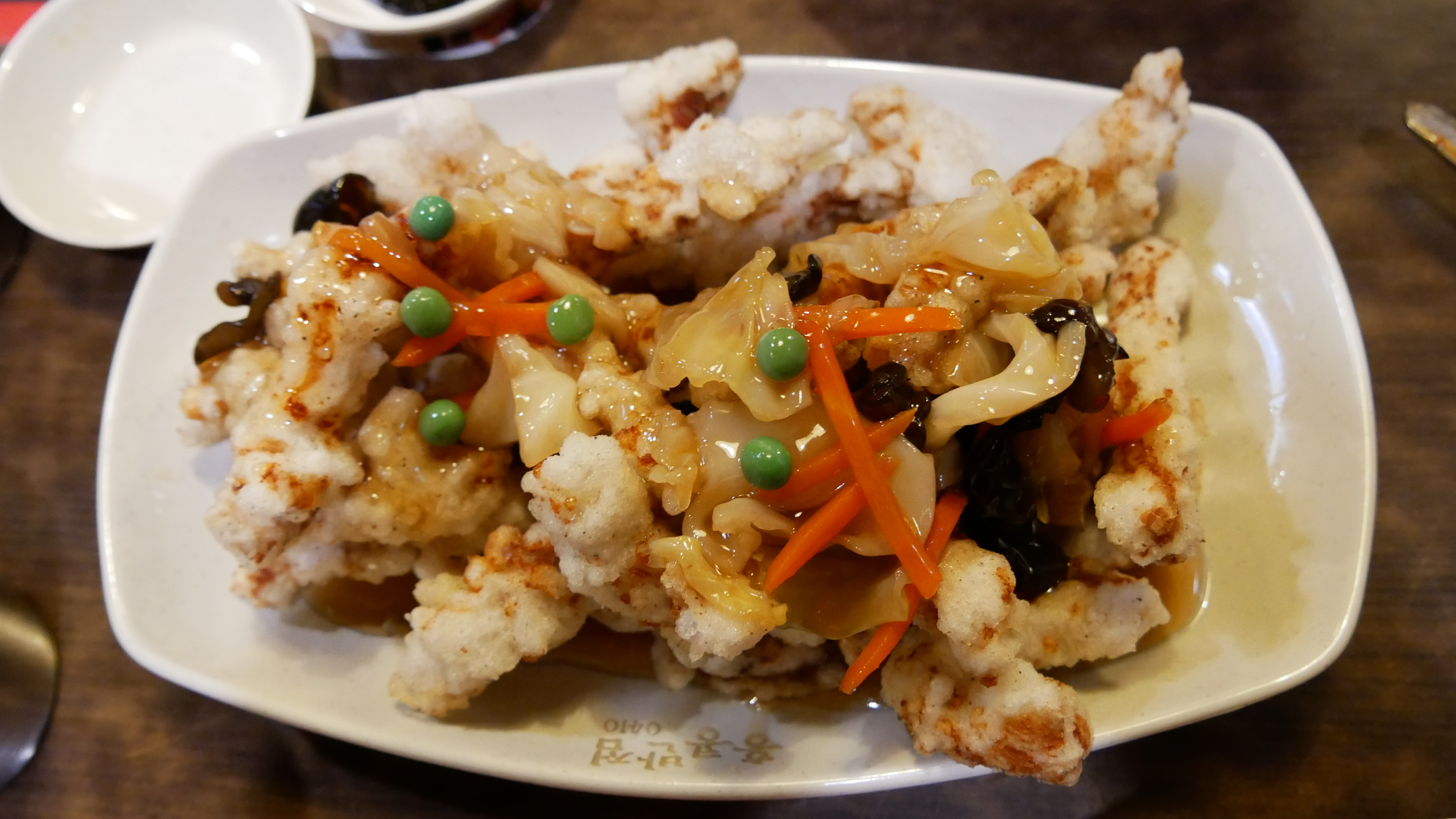 마지막으로 탕수육 (소) 인데요. 가격은 11000원이고 가격에 비해 양도 많고 고기상태도 많이 좋습니다. 쫄깃쫄깃한 식감과 부드러운 고기에 적당한 기름기로 육향이 좋습니다. 찹쌀탕수육인데 이 가격에 이정도 양이면 확실히 가성비는 최고인 것 같네요. 홍콩반점에 오면 자주 주문해서 먹는데요. 항상 먹을때마다 후회하지 않았습니다.