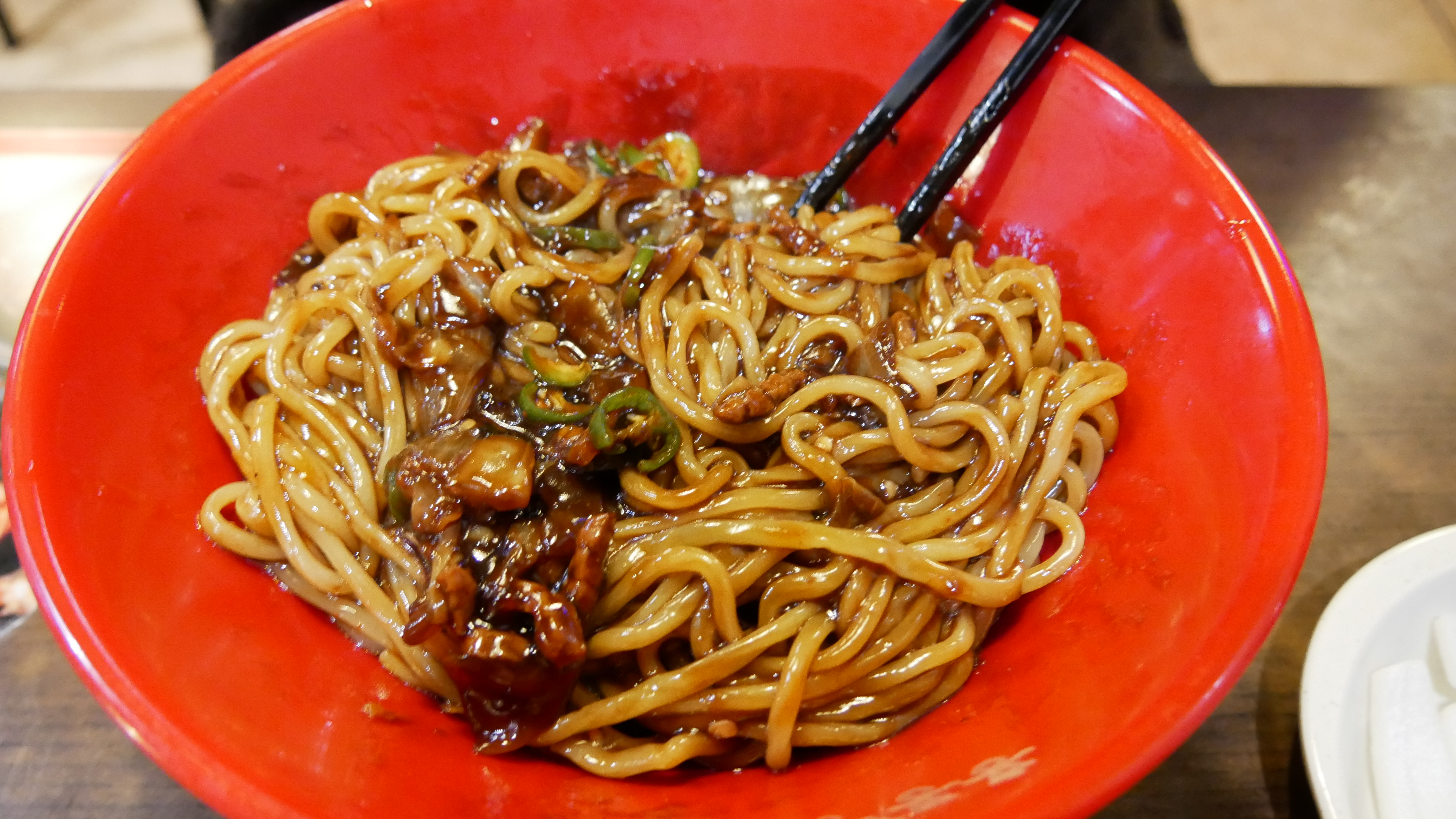 짜장면 보통 사이즈인데요. 천원을 추가하면 곱빼기로 먹을 수 있습니다. 면은 엄청 많거나 적지 않지만, 일반 성인 남성이 먹었을때 부족하지 않는 양입니다. 그리고 소스도 맛있고 딱 흔히 알고 있는 짜장면 맛입니다. 그리고 가격이 4500원이니까 정말 가성비는 최고죠.