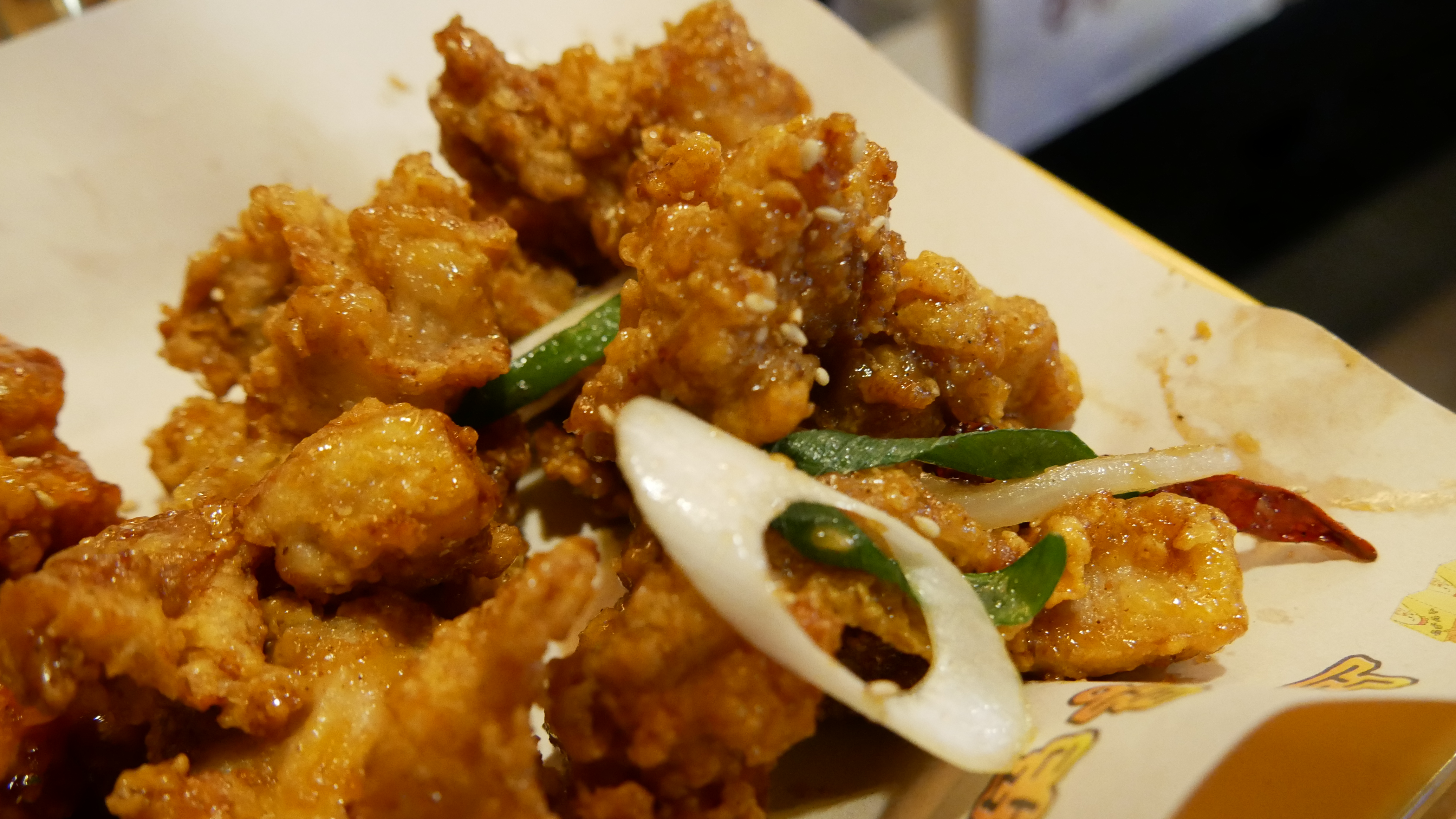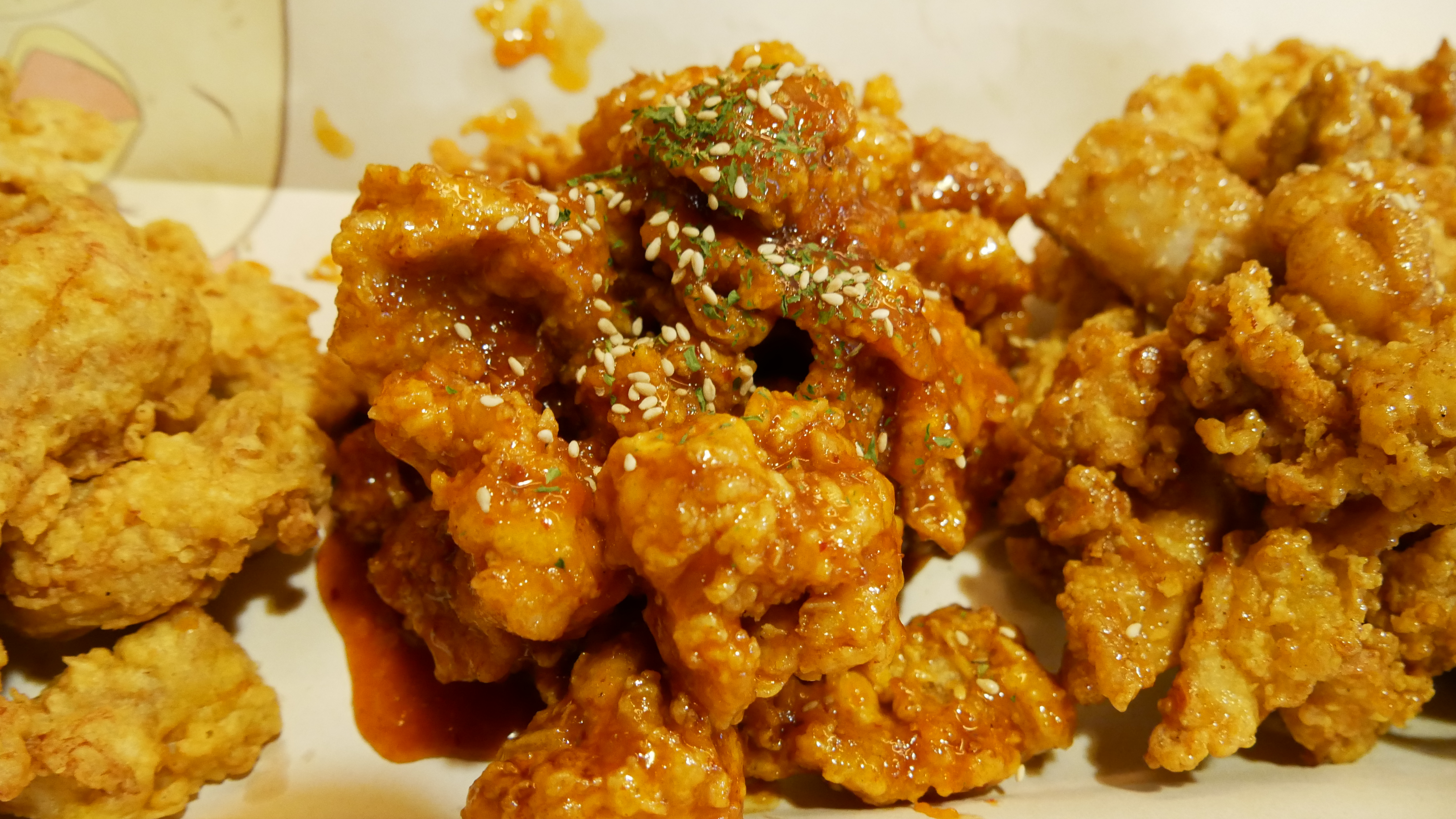 이게 양념이고, 양념의 경우 살짝 매콤했습니다. 어린이가 먹었을땐, 맵다고 할 수 있을 정도의 맵기입니다. 느끼할때 먹으면 딱 좋은 양념입니다.