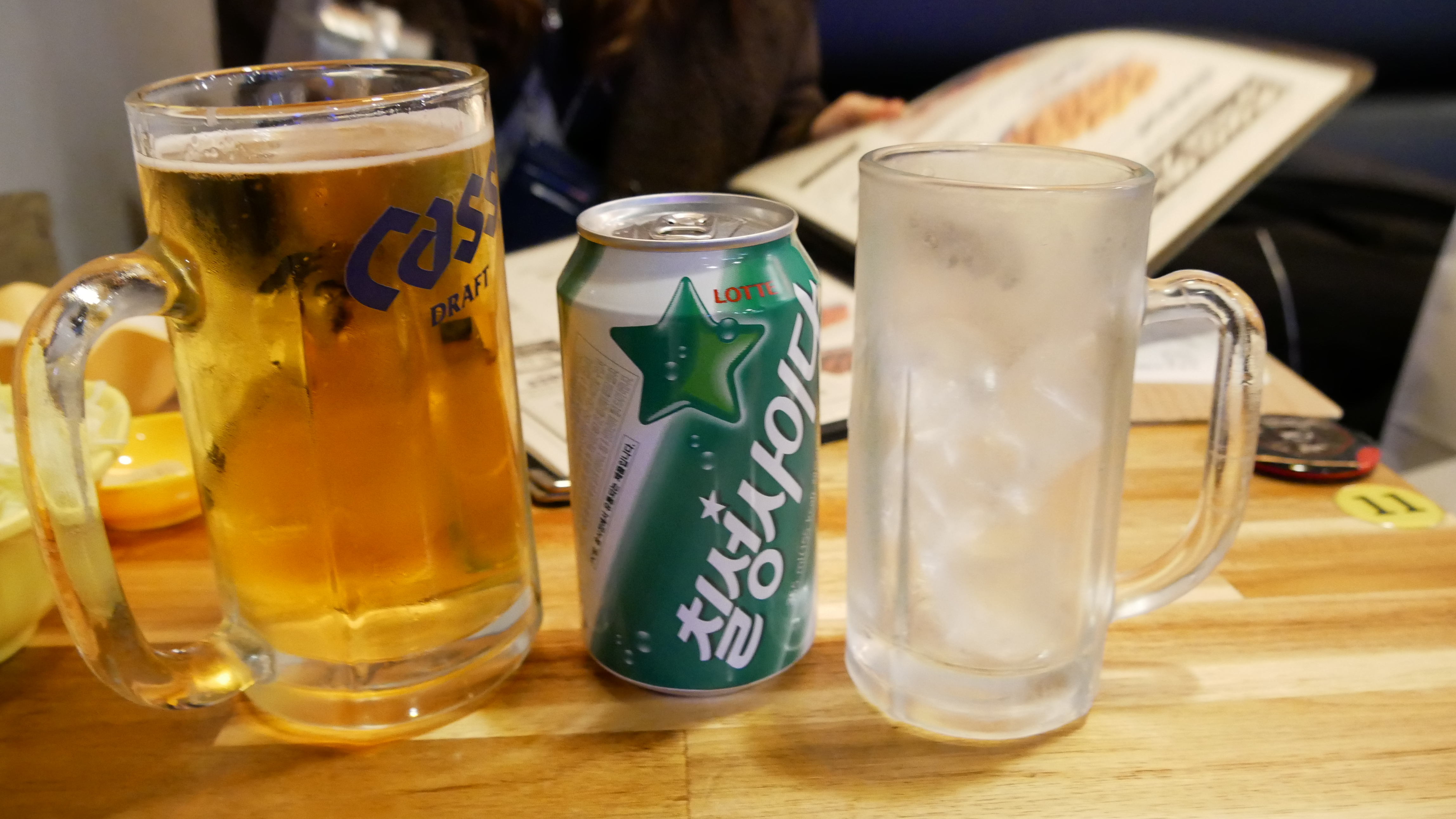 주문한 맥주와 사이다가 먼저 나왔습니다. 저는 사이다 여자친구는 맥주 ㅋㅋ