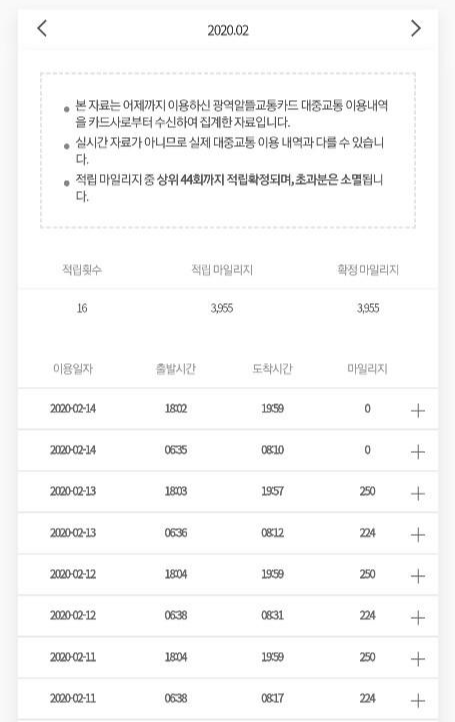 만약에 GPS를 정확하게 켜고 다닌다면 하루에 224 + 250 = 474원씩 일주일에 2370원을 절약할 수 있습니다. 그리고 한달에 대충 9480원을 절약할 수 있습니다. 그리고 출퇴근을 5일씩 4주한다고 하면 40회를 이용하고 나머지 4회는 주말에 사용한다고 하면 한달에 만원정도 절약이 가능하겠습니다. 실제로 2월 8일을 보면 313원 402원이 적립되었습니다.