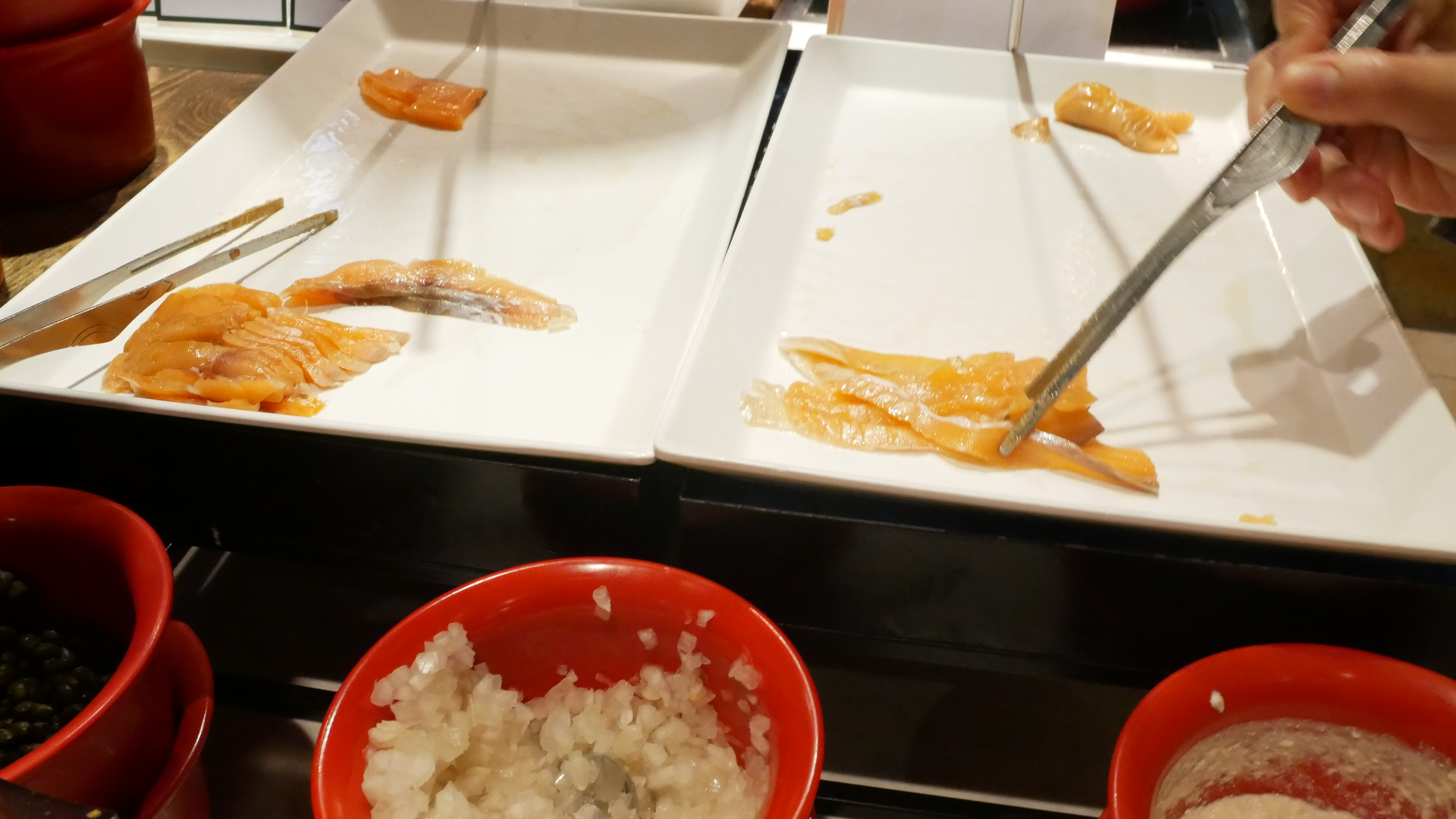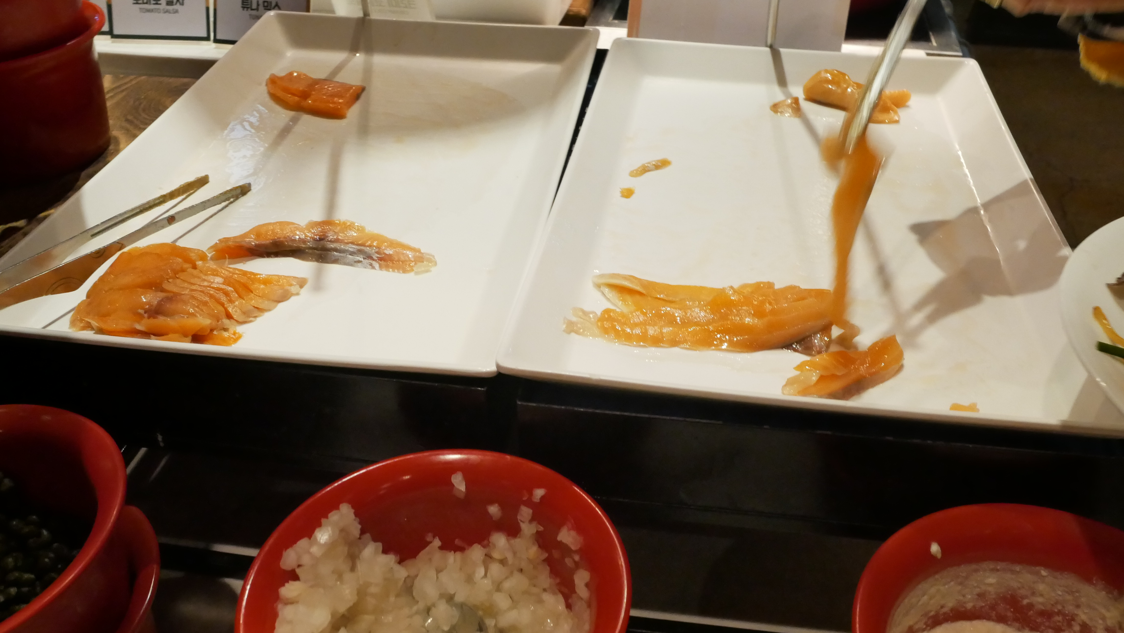 그리고 제가 좋아하는 연어도 있었는데요. 훈제 연어이고 다양한 소스가 있어서 좋았습니다. 연어만 한 3번정도 갔다 먹었어요.
