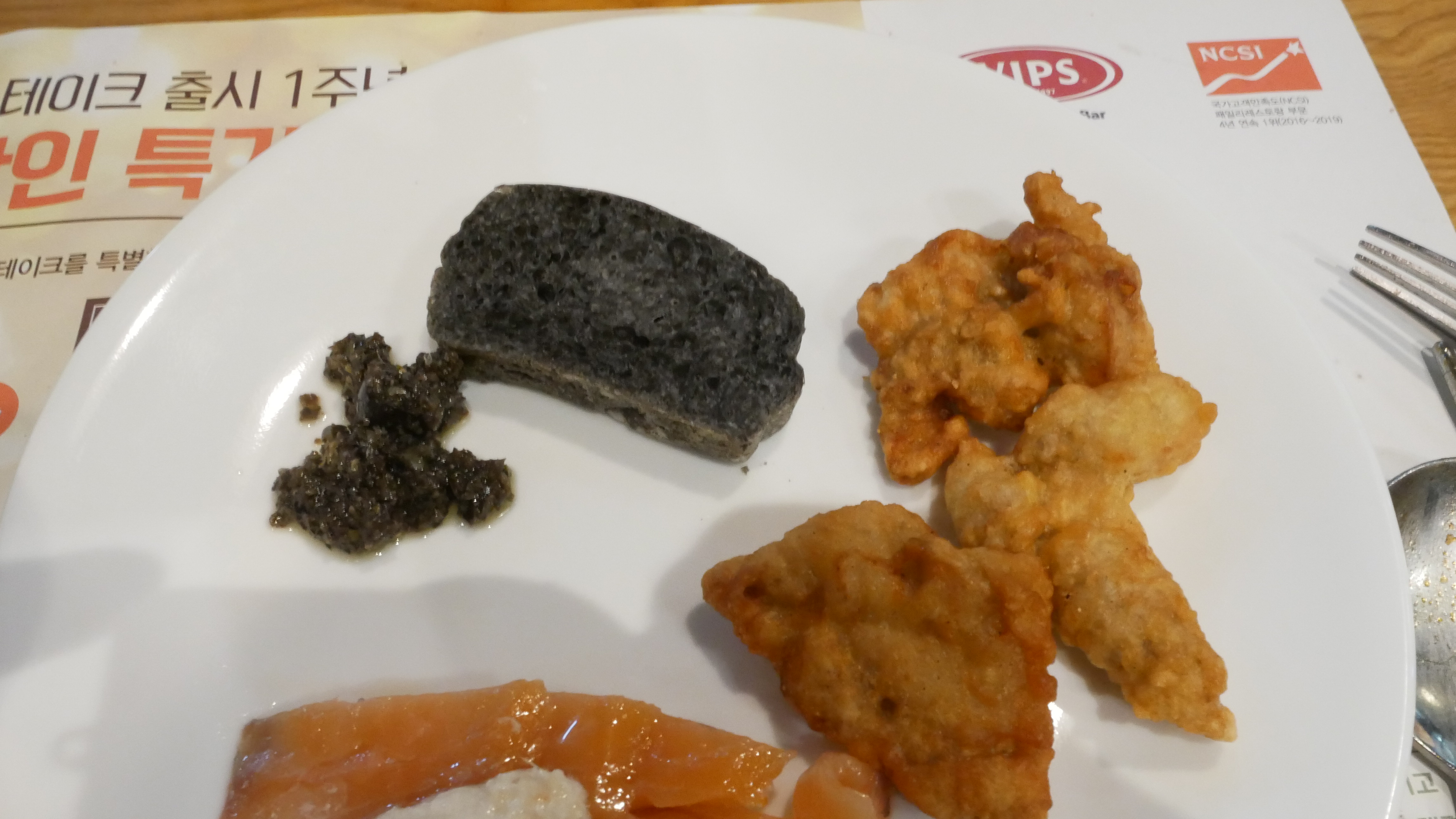 그리고 마지막으로 연어와 치킨 그리고 빵, 아이스크림을 가져왔습니다. 여기까지가 식사고 후식도 먹었어요. ㅋㅋ