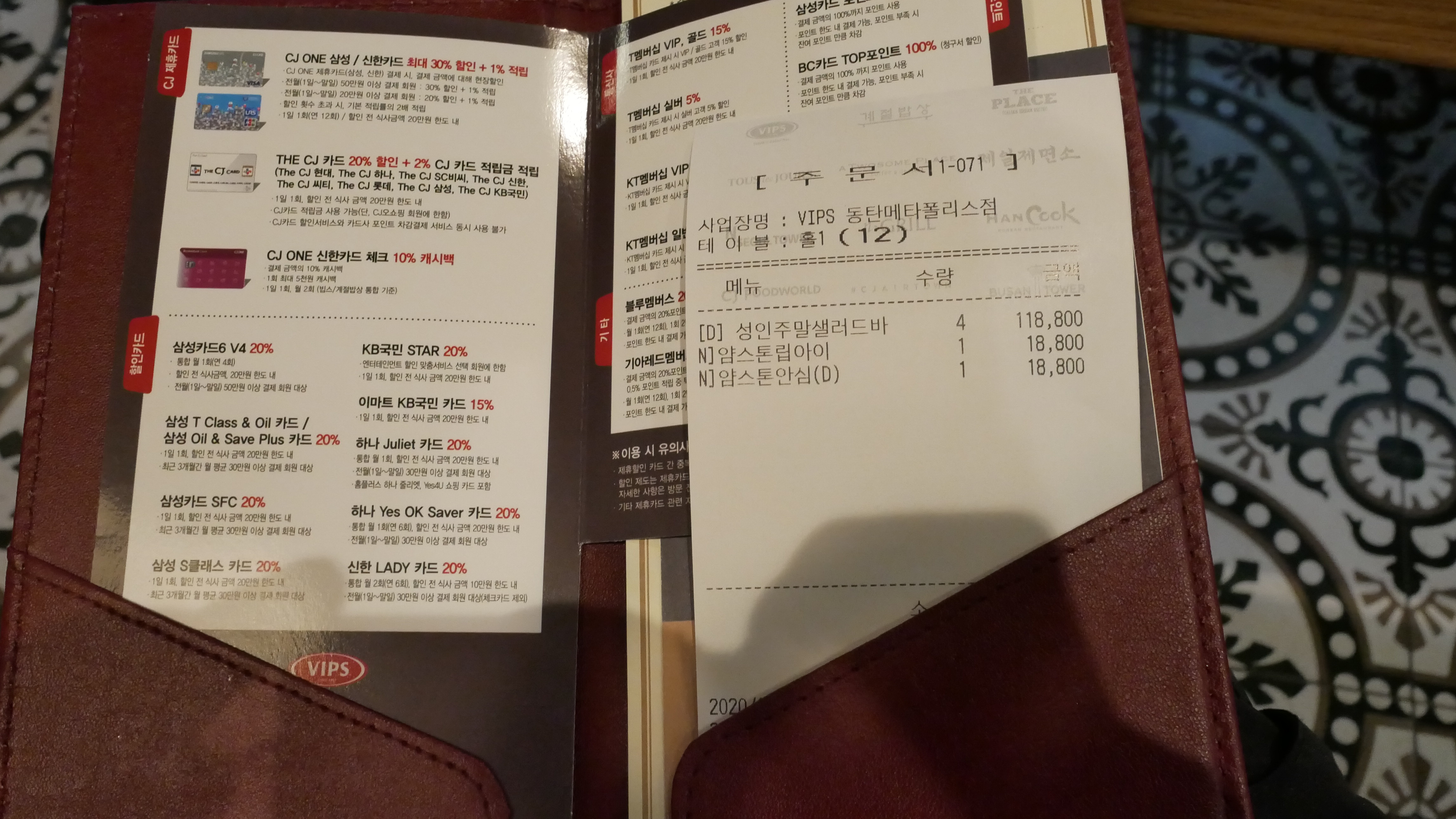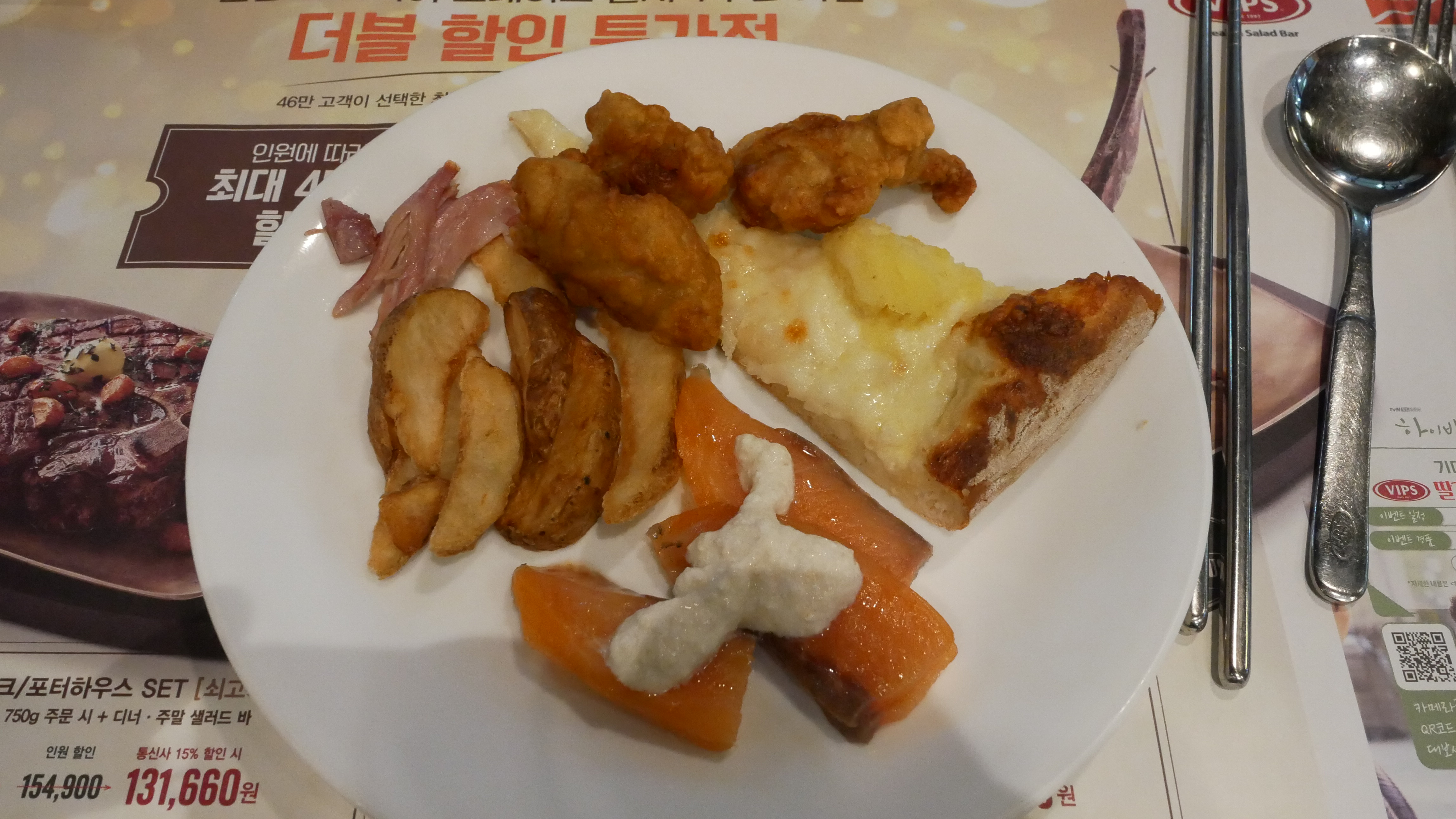 그리고 제휴카드와 할인카드를 이용하면 더 많은 혜택을 받을 수 있으니까 참고하세요. 메뉴를 주문하고 기다리는 동안 샐러드바를 이용하였습니다.