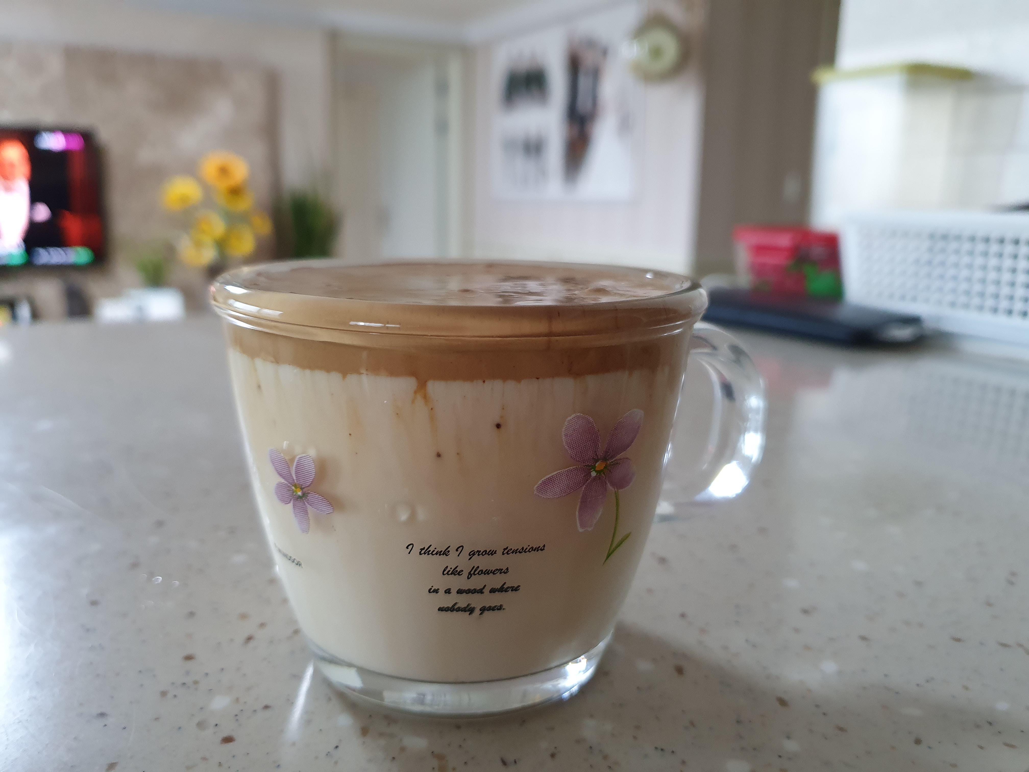 이렇게 주말에 유행하는 달고나라떼를 만들어봤는데요. 먹을때는 잘 섞어서 먹어야합니다. 위에만 먹으면 너무 달아요 ㅎㅎ..