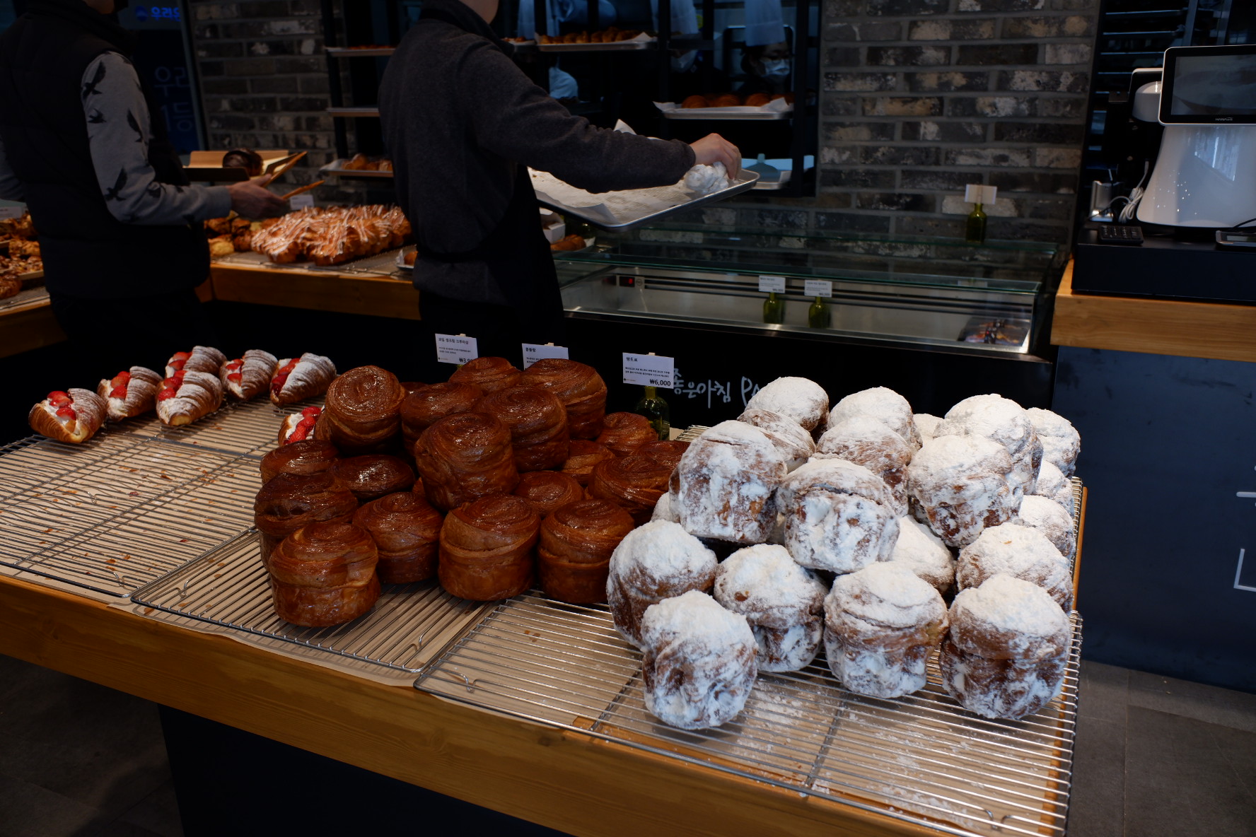 그리고 가운데에도 빵이 있습니다. 전체적으로 매장이 큰편은 아니지만, 공간 활용을 잘 해서 좁은 공간에 많은 빵들을 판매할 수 있더라고요. 그리고 사람들이 정말 많았습니다. 그래서 빵만 빠르게 고르고 나왔어요. ㅎㅎ