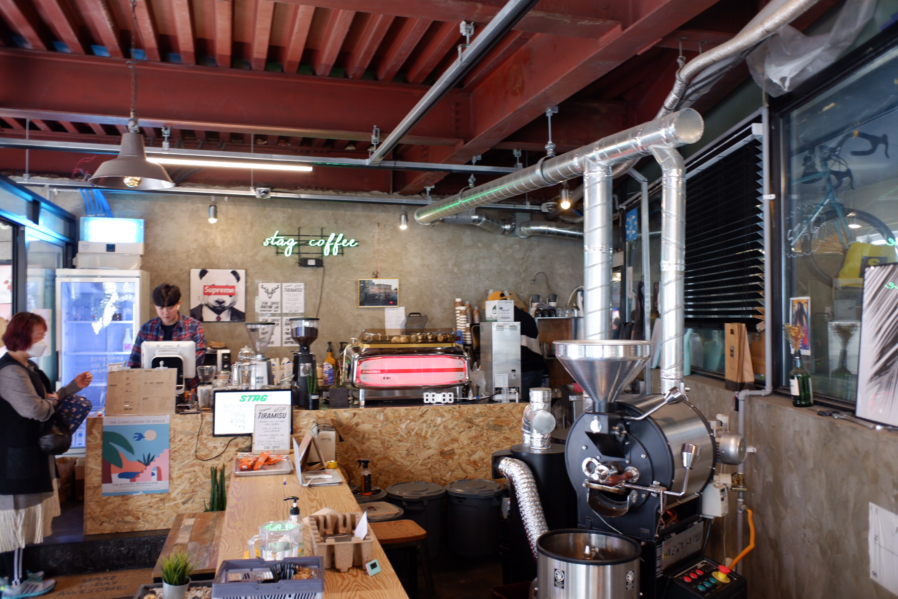 카페 안쪽에는 직접 로스팅을 하는 기계도 있고 원두도 판매를 하고 있는 것 같았습니다. 내부는 꽤 넓고 자리도 많아서 좋았습니다. 1층보다는 2층이 자리가 더 많이 있습니다.