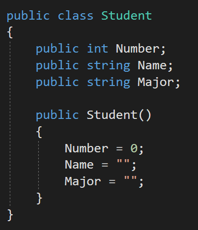 간단하게 학생번호와 이름 전공을 갖고 있는 학생이라는 구조체입니다. 구조체의 경우 생성자를 사용하게 되면 몇가지 제약조건이 생기게 되는데요. 매개변수가 없는 생성자를 만들 수 없고, 생성자를 생성하게 되면 필드가 모두 할당이 되어있어야합니다.