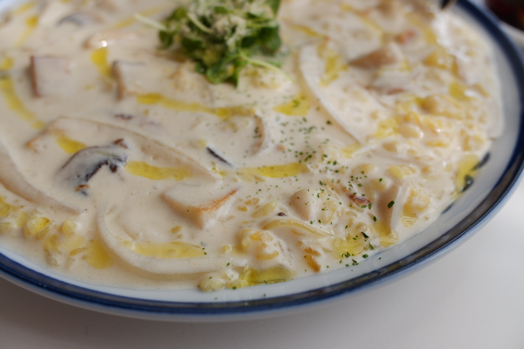 풍기 크레마가 먼저 나왔는데요. 음식이 나오면 서빙해주시는 분께서 간단한 설명을 해주시더라고요. 풍기는 이탈리아어로 버섯이라는 뜻이고 크레마는 크림이라는 뜻으로 버섯 크림 리조또라고 보시면 됩니다.