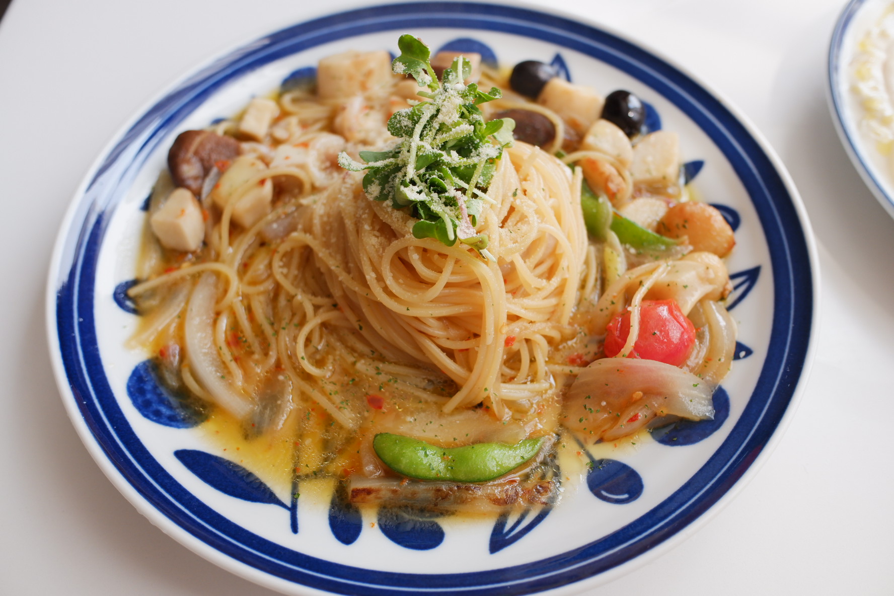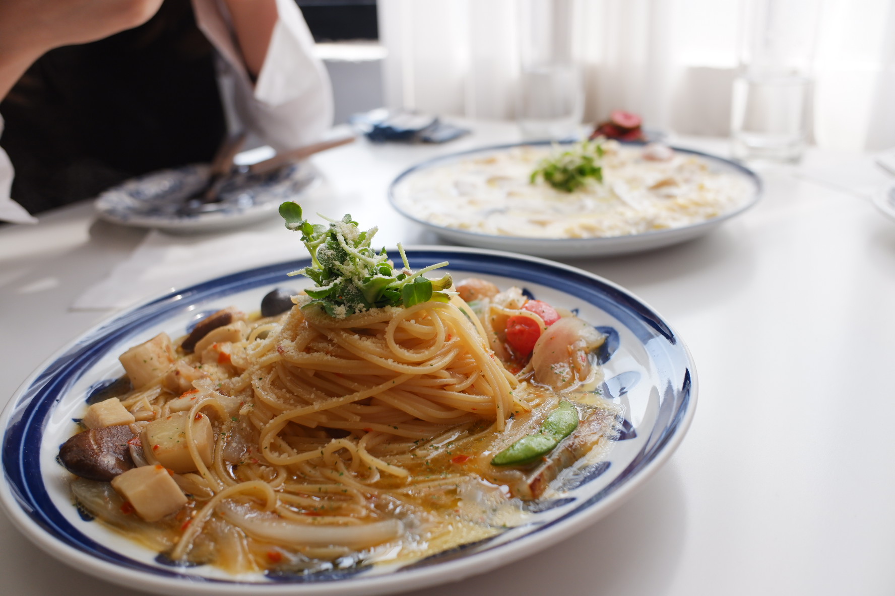 그리고 알리오 올리오가 나왔는데요. 원래 알리오 올리오라고 하면 올리브 오일과 마늘이 많이 들어가서 고소한 맛이 좋은 파스타라고 알고 있었는데요. 이곳의 알리오 올리오는 좀.. 많이 다르더라고요.