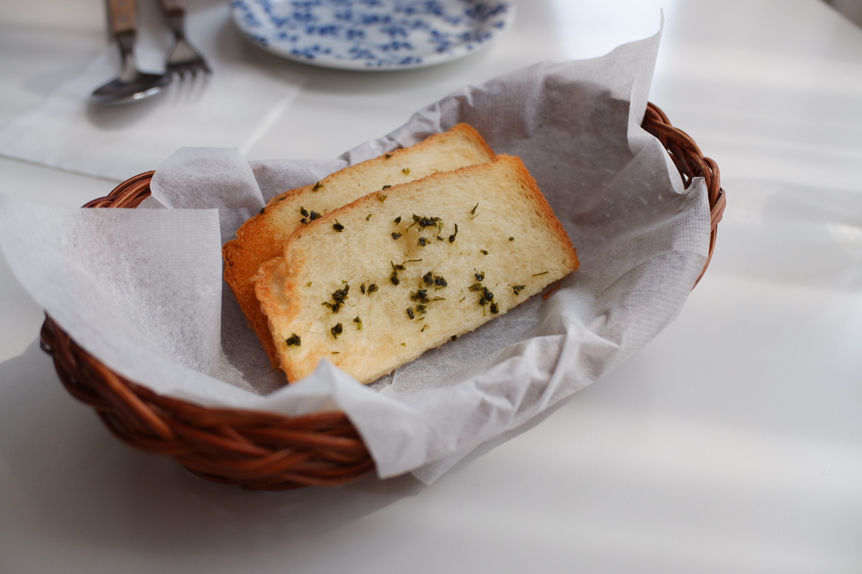 메뉴를 주문하고 기다리면 식전빵을 가져다가 주시는데요. 식전빵은 크게 특별한 것은 없고, 식빵에 마가린과 함께 이것저것 섞어서 적당히 구워서 나옵니다.