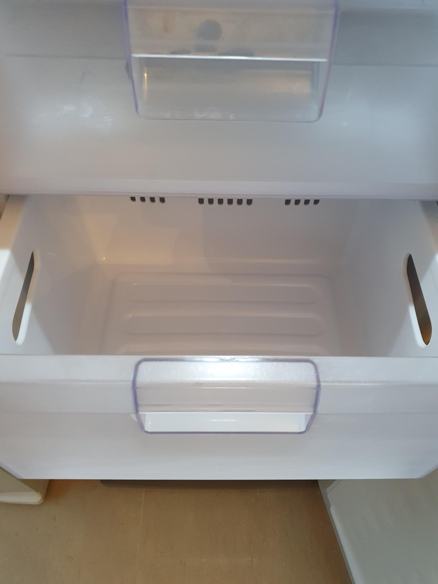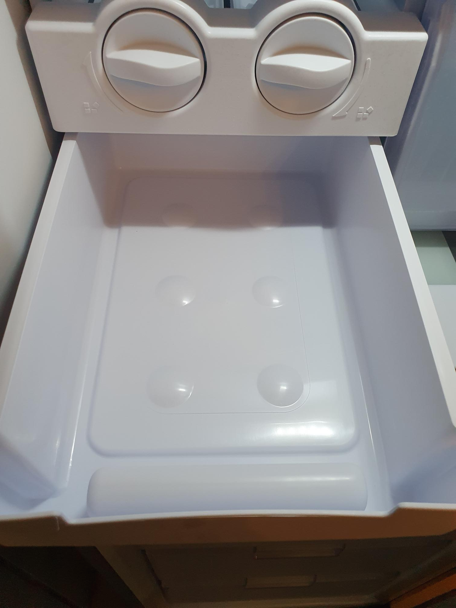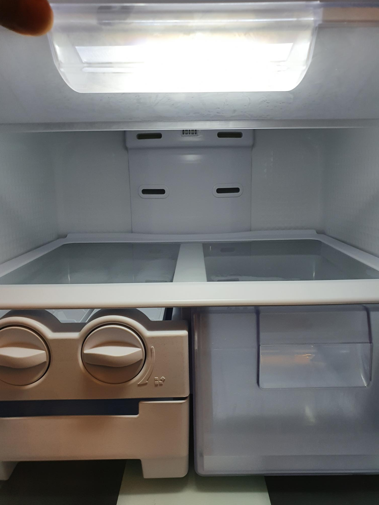 가장 위 상단은 위로 열 수 있는 문이 있고, 무겁지 않은 식품을 넣기 좋을 것 같아요. 고사리나 쑥 같은 것들이나 피자나? ㅋㅋ 위에 칸도 생각보다 넓기 때문에 통에 담아서 차곡차곡 넣으면 꽤 많이 들어갈 것 같아요. 그리고 내부에 튀어나오는 부분이 없어서 통을 활용하는게 좋아보이네요.