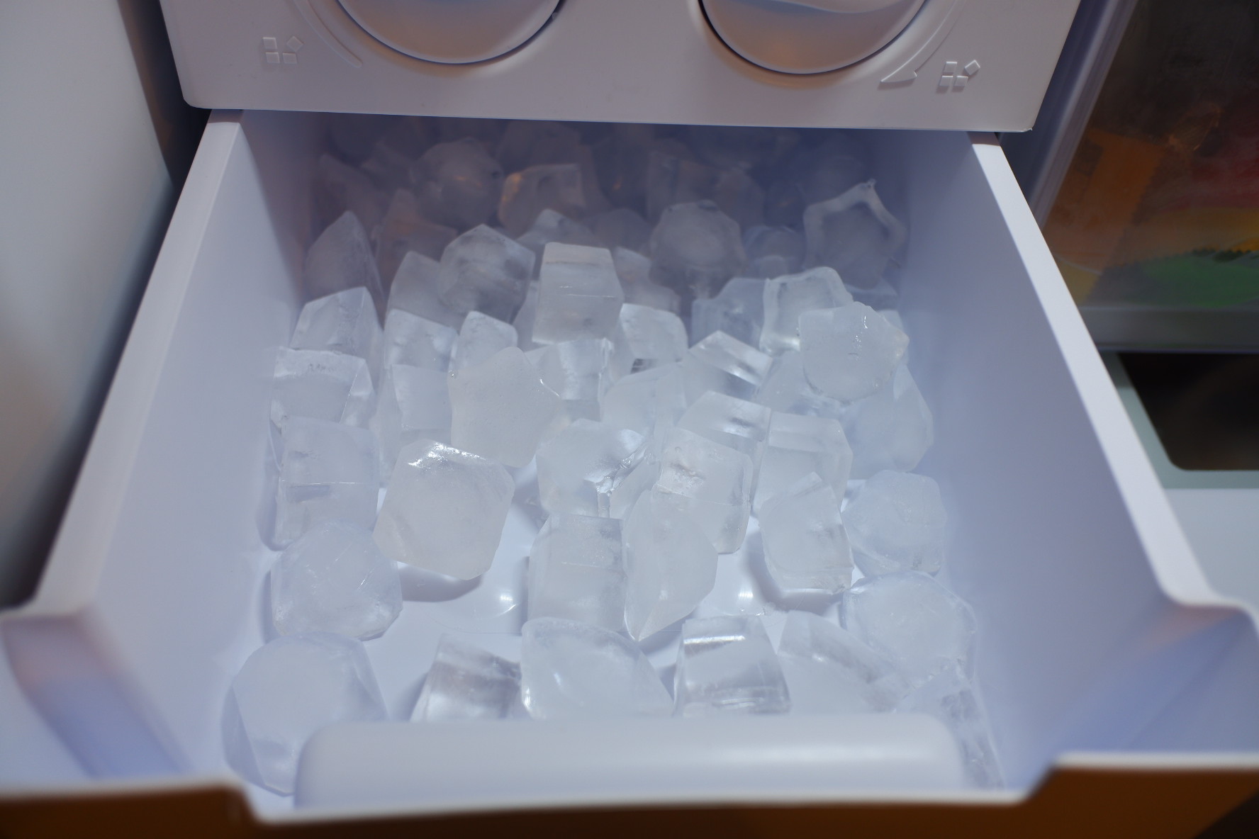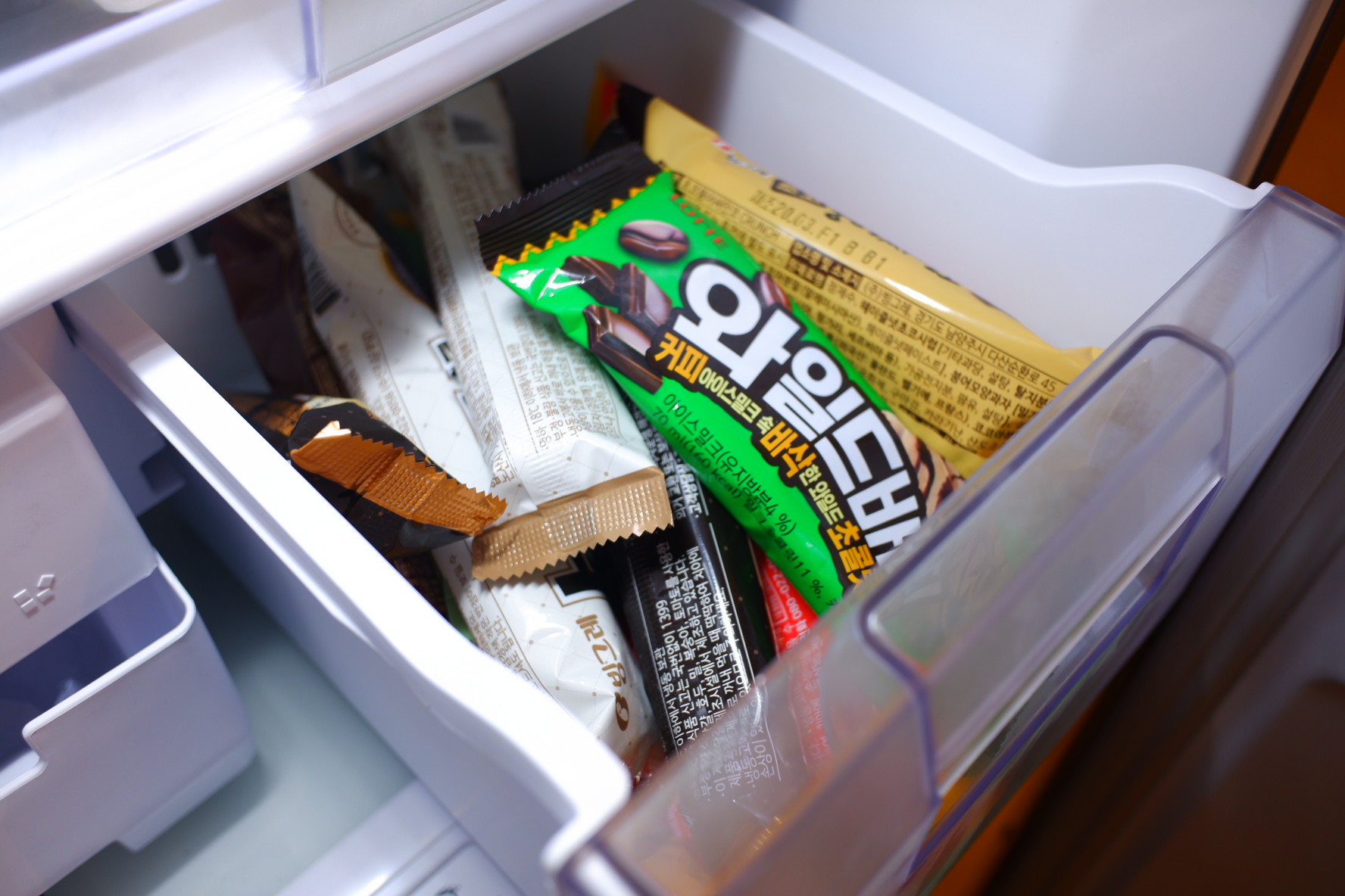 그리고 얼음통 바로 옆에는 아이스크림 통이 있습니다. 집 앞에 아이스크림 할인 매장이 있어서 아이스크림을 많이 쟁여 놓으면 여름에 든든할 것 같네요.