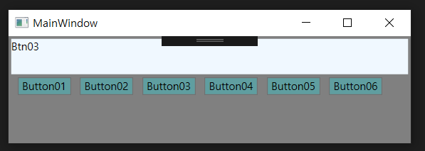 가장 위에는 TextBlock으로 글자를 보여주는 Control 이고 아래는 Button입니다. 해당 버튼을 누르면 해당 버튼의 Content 가 TextBlock에 표현되는 기능을 Binding으로 구현을 해보도록 하겠습니다.
