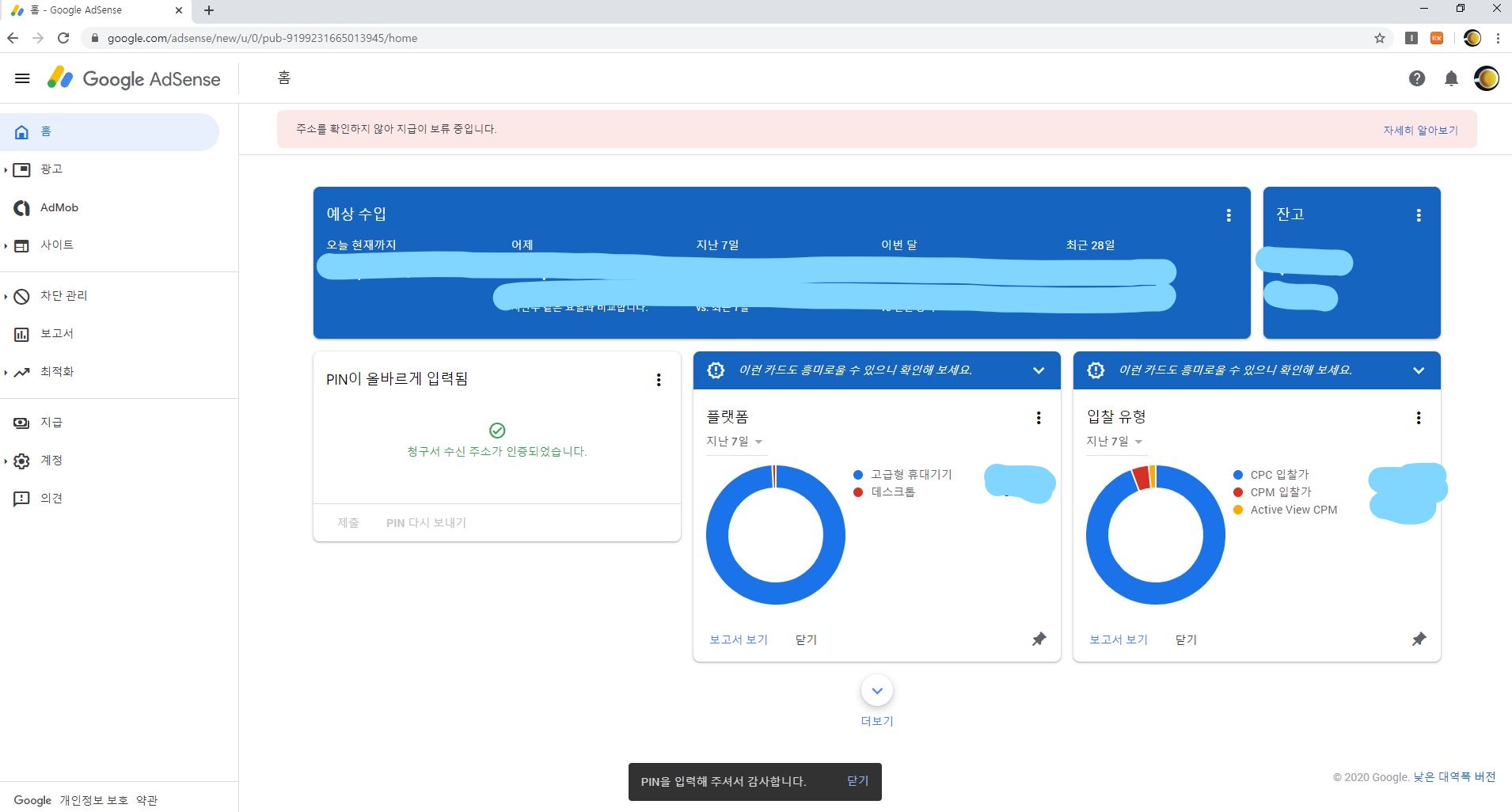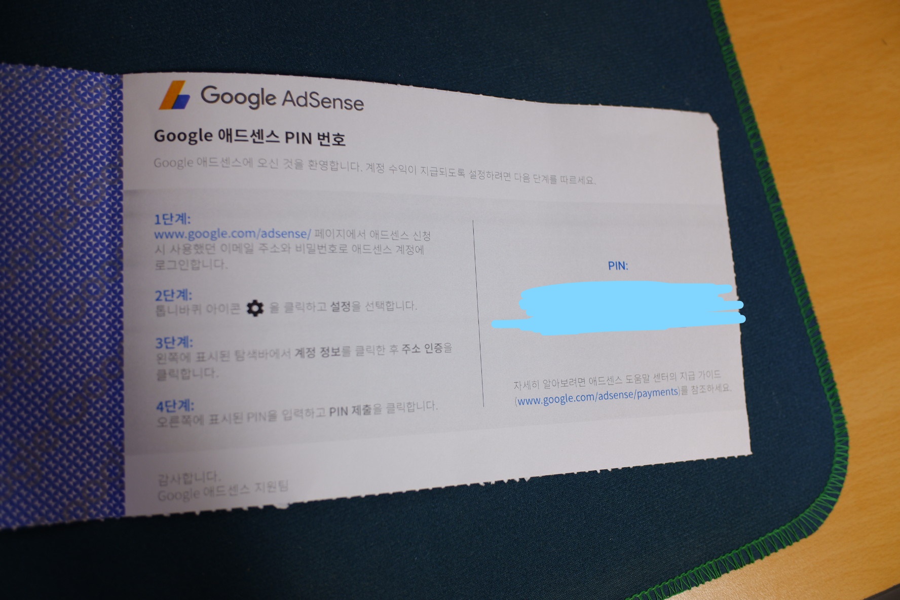 애드센스 PIN 번호 받은 후기!
