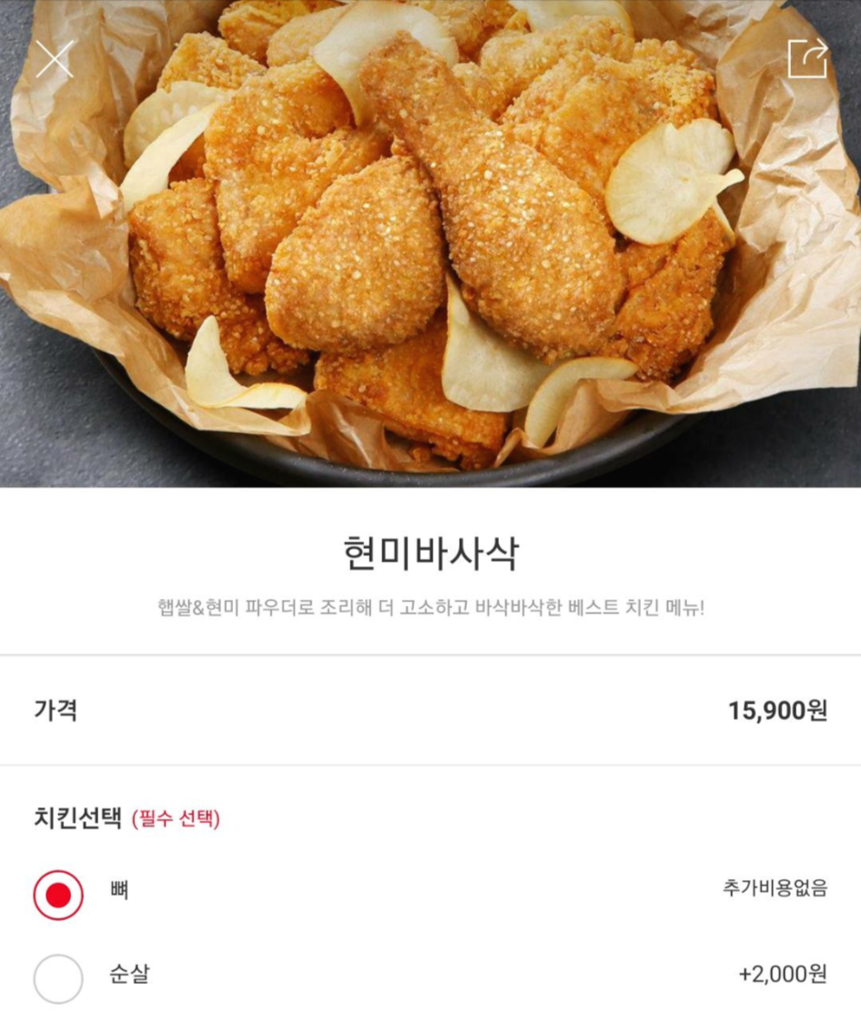 저는 바른치킨의 시그니처 메뉴인 현미바사삭을 주문했습니다. 일반 치킨집에 후라이드 메뉴와 비슷한 메뉴인데요. 이곳은 햅쌀과 현미 파우더를 이용해서 튀기기 때문에 훨씬 고소하다고 합니다.