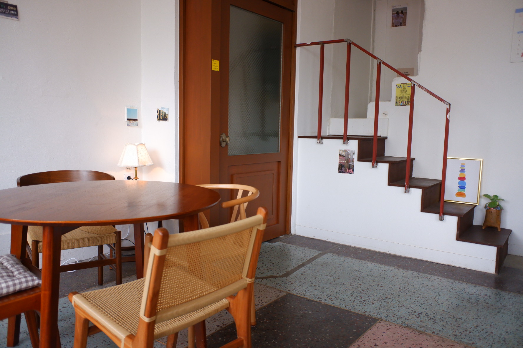 계단을 올라가는 길은 하얀색으로 깔끔하게 꾸며져 있고, 이쁜 그림이 붙어 있습니다.