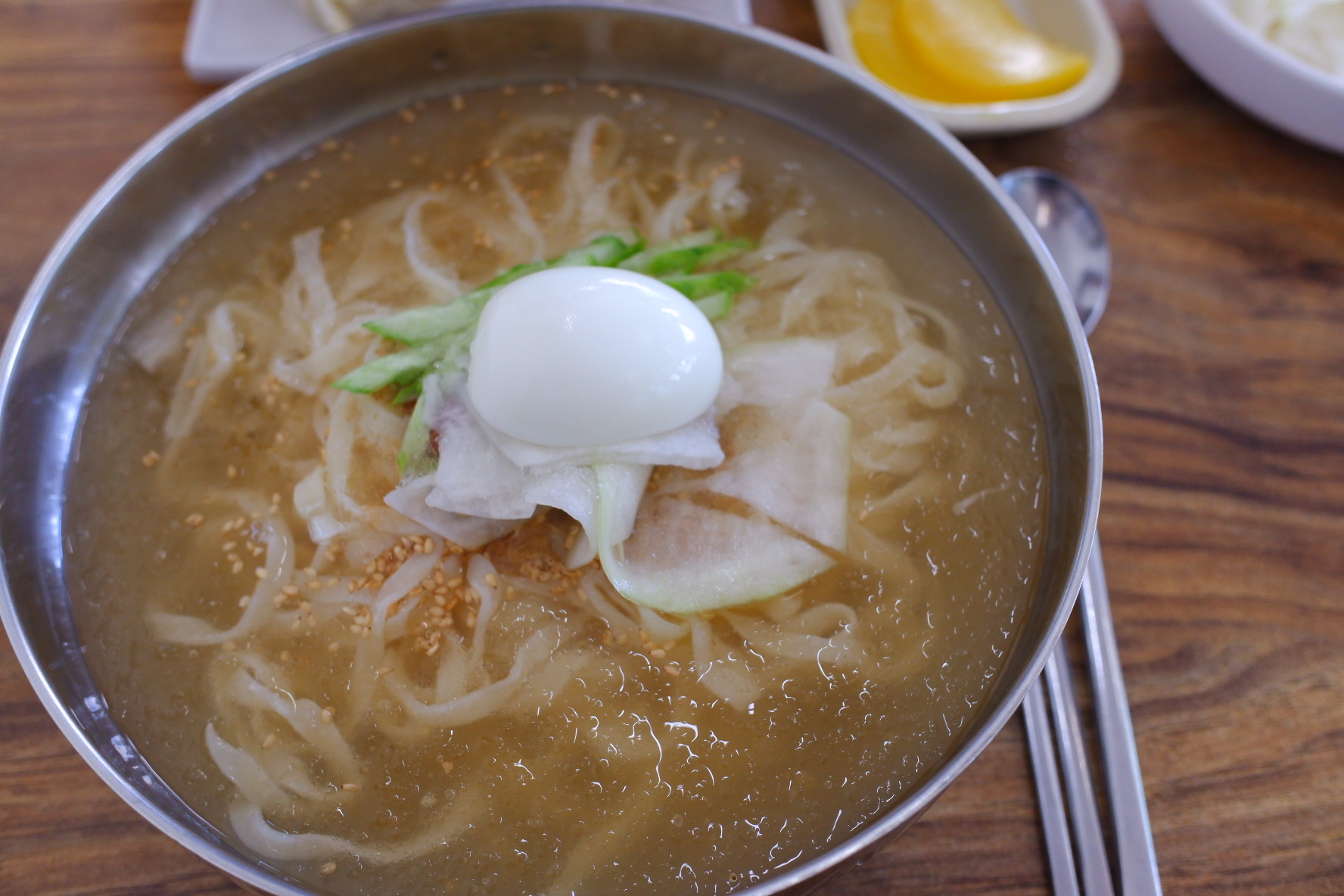 칼국수면에 냉면육수가 나오는데요. 면 식감도 쫄깃쫄깃하고 시원하게 먹을 수 있어서 좋았습니다. 단지 육수가 차갑기 때문에 면이 딱딱하다고 느낄 수 있는데요. 면이 안익은건 아니고 너무 차갑기 때문에 그렇게 느껴지는 것입니다.