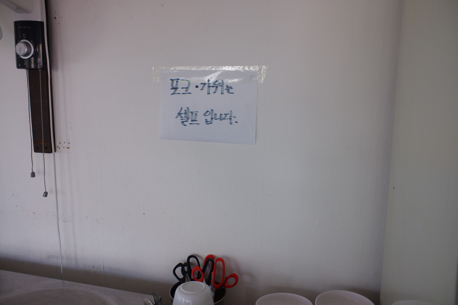 겨자와 식초를 먼저 가져다주셨고요. 그리고 가위도 가져다주셨습니다.