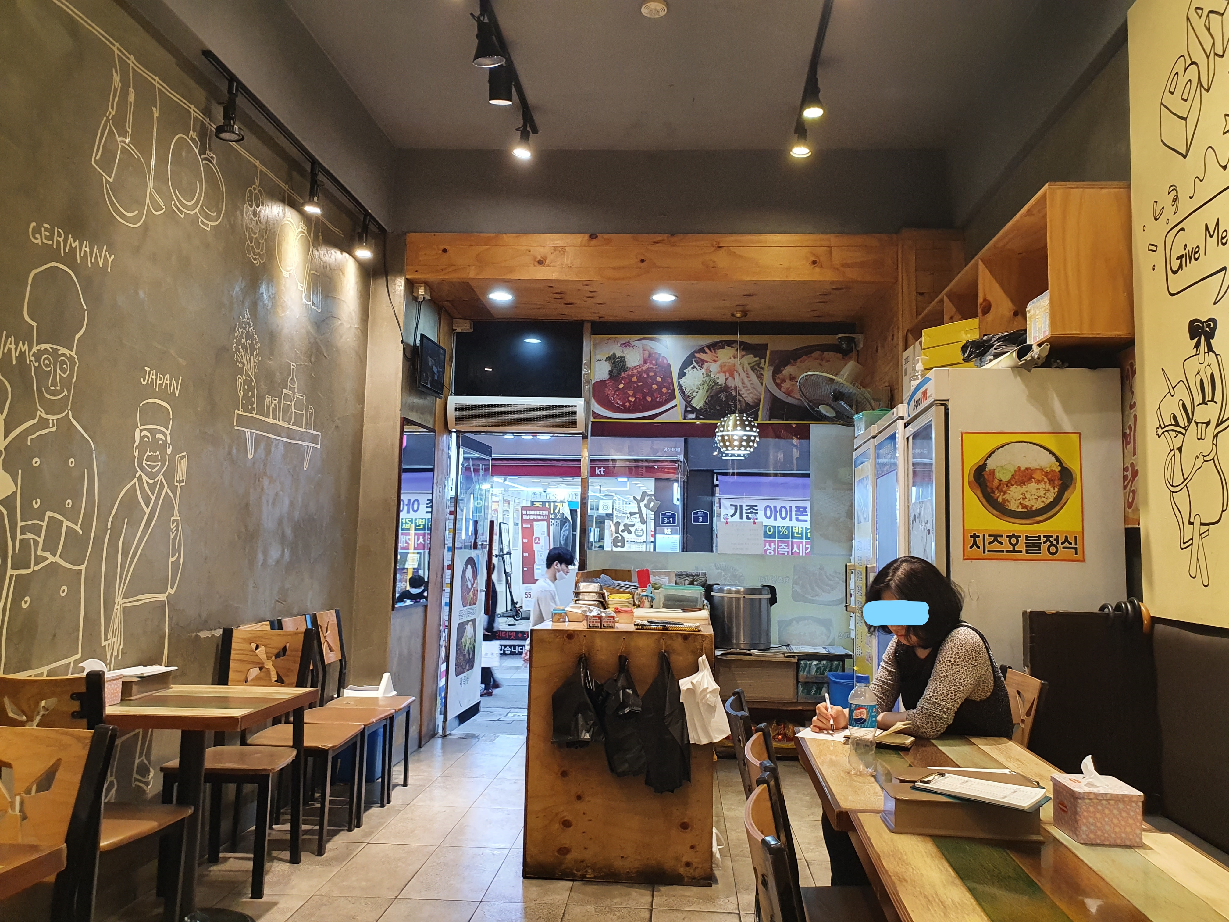 내부는 꽤 넓은 곳으로 2인 테이블과 4인 테이블로 구성되어 있습니다. 테이블은 엄청 많고, 저희를 제외하고 모두 혼밥을 하시는 분들이였습니다. 수원역으로 놀러오는 분들도 많이 있지만, 공부하는 학생들도 많이 있어요. 근처에 학원도 많이 있고, 스터디도 많이 있거든요.