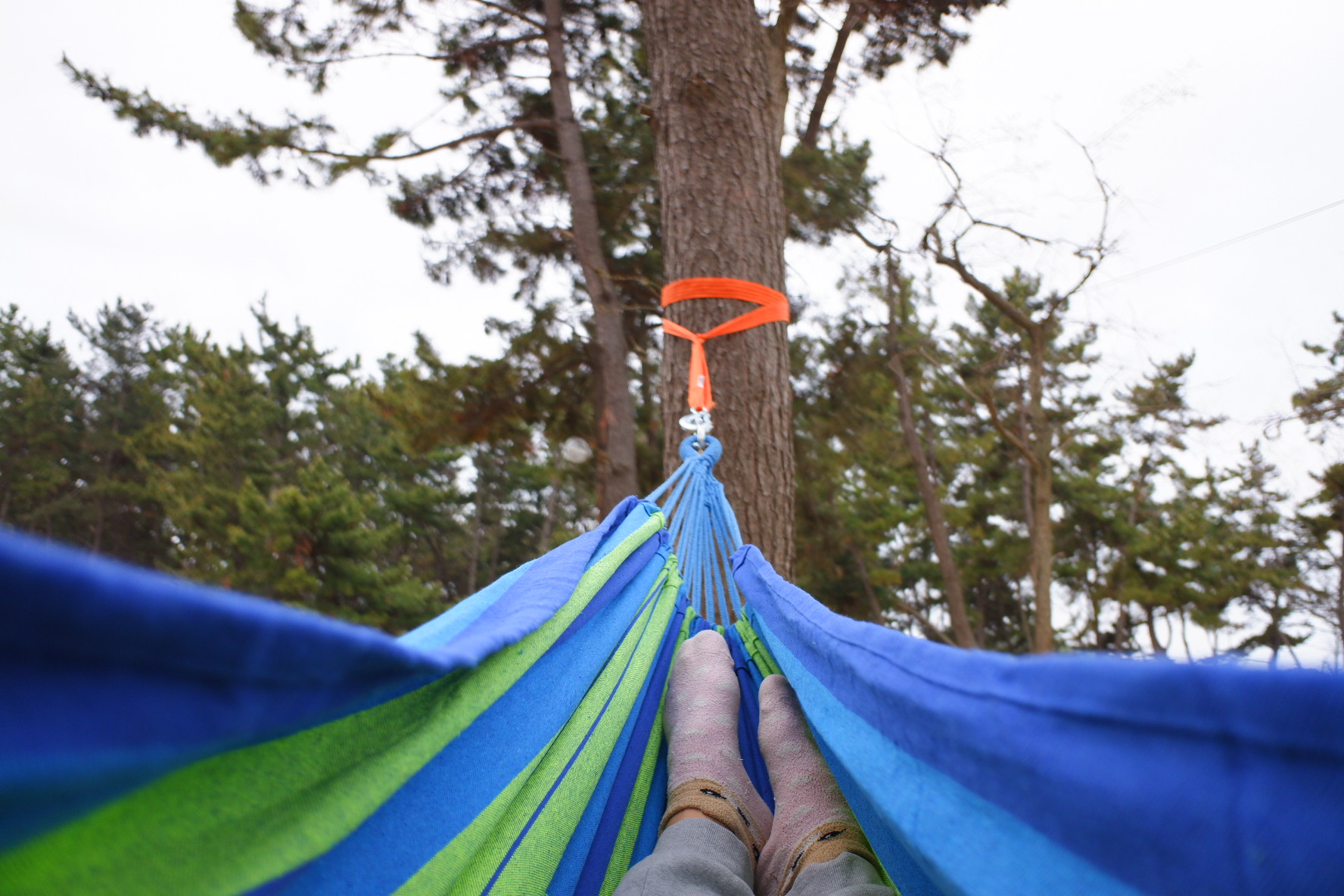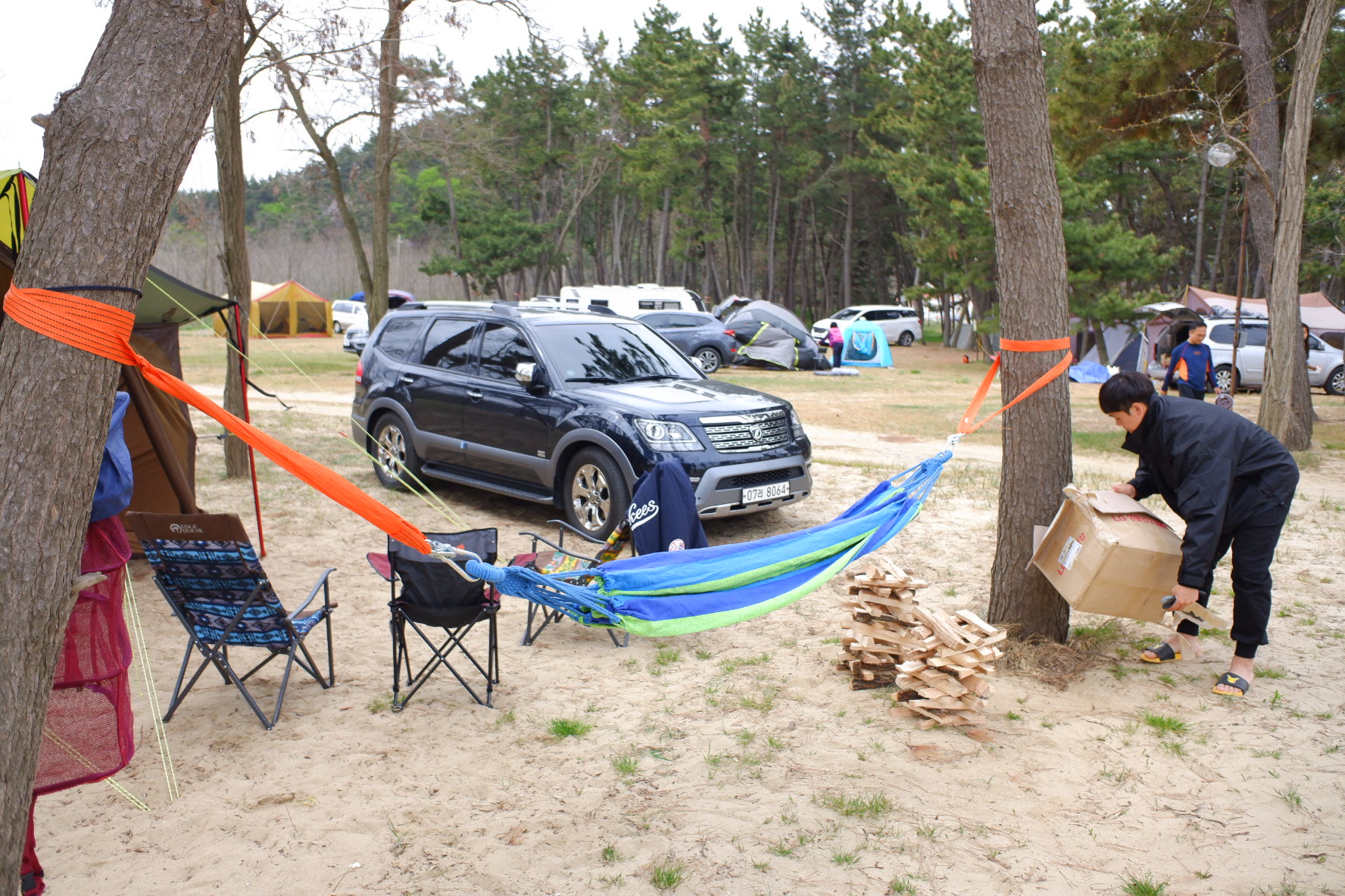텐트를 설치하고 해먹도 설치했어요. 해먹 최고예요.