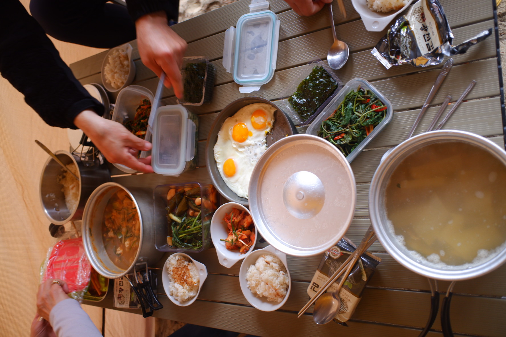 저희는 반찬도 가져가고 요리도 해먹어요. 아침식사인데 엄청 푸짐하네요. ㅋㅋ 집에서도 이렇게 안먹는데 (≧σ≦)