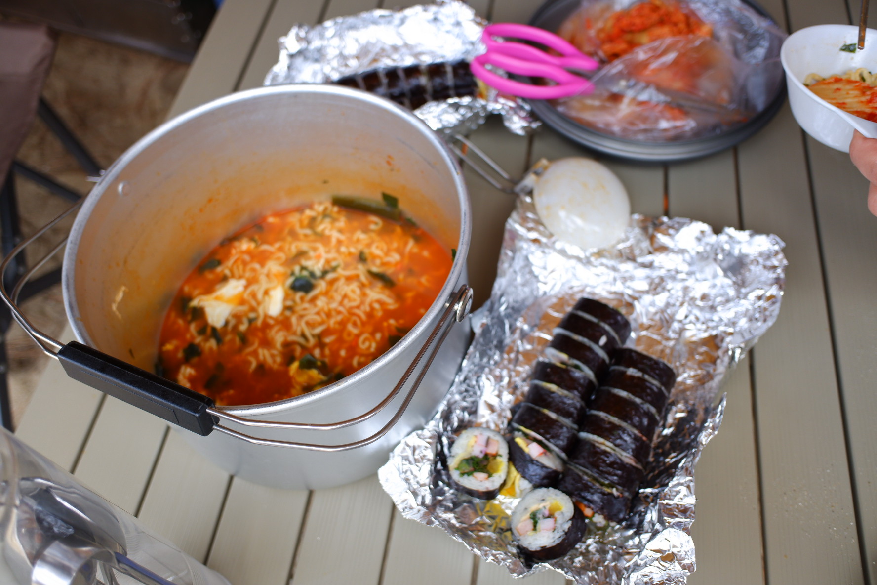 첫끼는 라면에 김밥입니다. 넘사 꿀조합이죠. ㅋㅋ