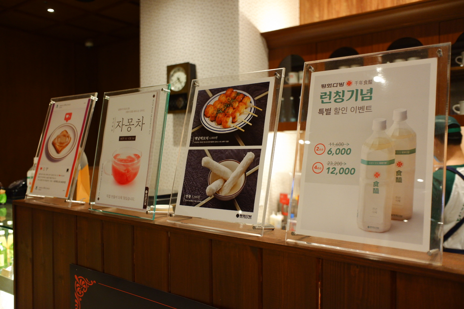 그리고 다른 메뉴도 판매하고 있습니다. 떡도 판매하고 있네요. 확실히 한국스러운 느낌의 메뉴들이 많이 있어요. 그리고 런칭기념으로 식혜를 판매하고 있어요. 페트병으로 2개에 6000원이면 시장에서 판매하는 것이랑 비슷한 가격인 것을 감안하면 비싸지 않은 가격인데요. 이게 할인된 가격이고 할인 이벤트가 끝이 난다면 살짝 비싸보이네요.