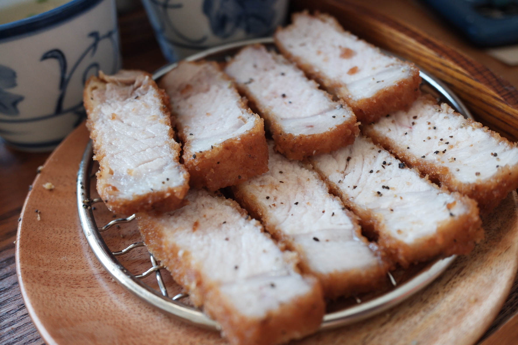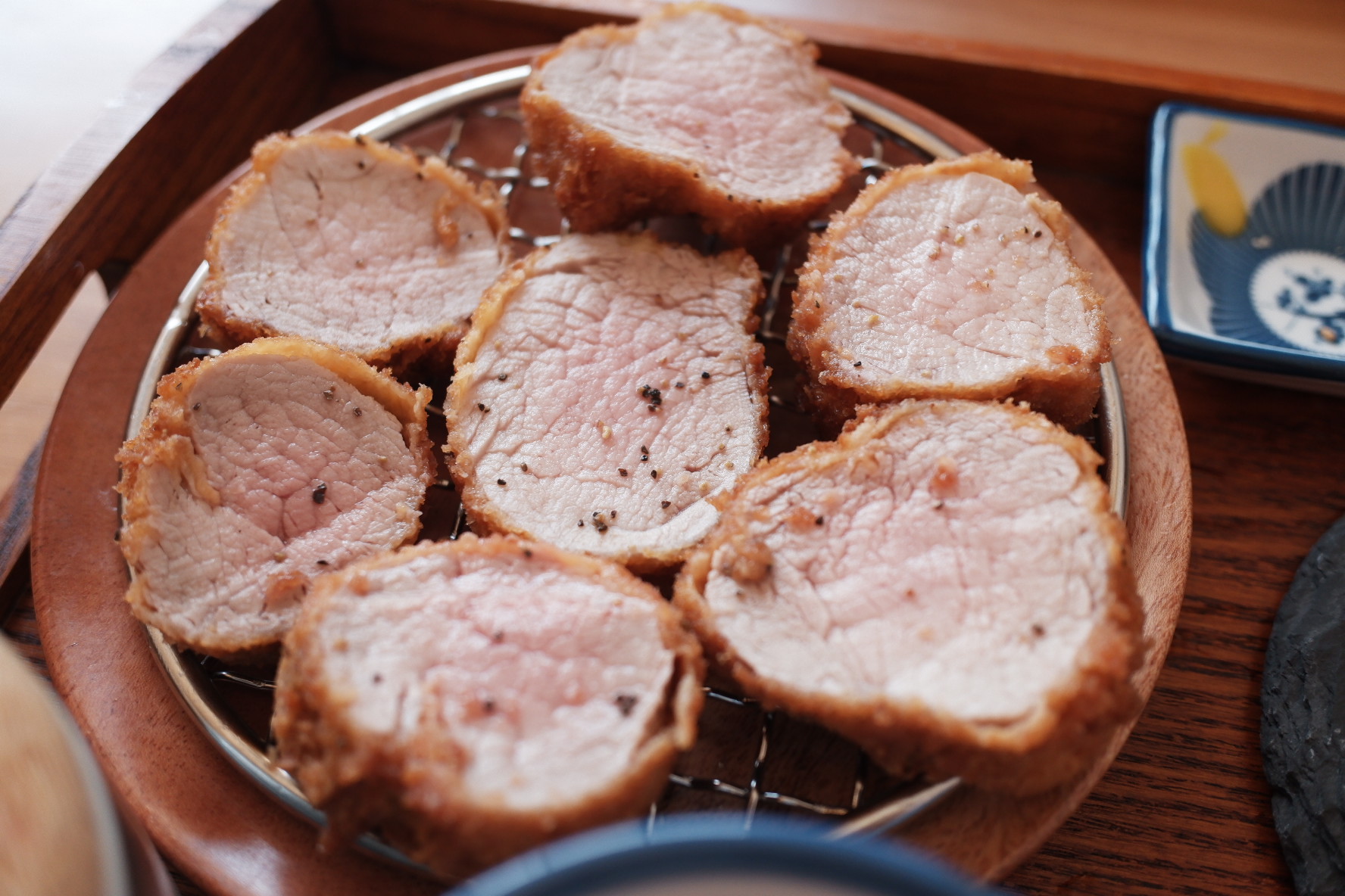 그리고 안심입니다. 안심은 등심에 비해서 상태가 좋았습니다. 하지만 서울 유명한 돈까스집에 비하면 한참 멀었습니다. 일반적으로 돈까스 가운데 붉은빛이 나는 것이 미오글로빈이라고 신선한 고기에서 보이는 특징이라고 하는데요. 살짝살짝 보이긴 합니다.