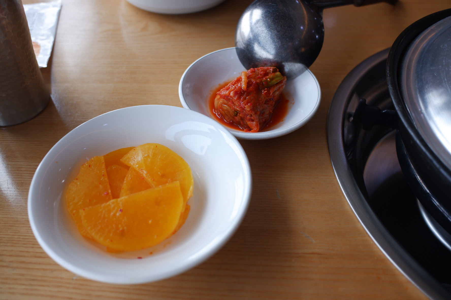 그리고 반찬으로는 단무지와 김치가 나왔습니다.