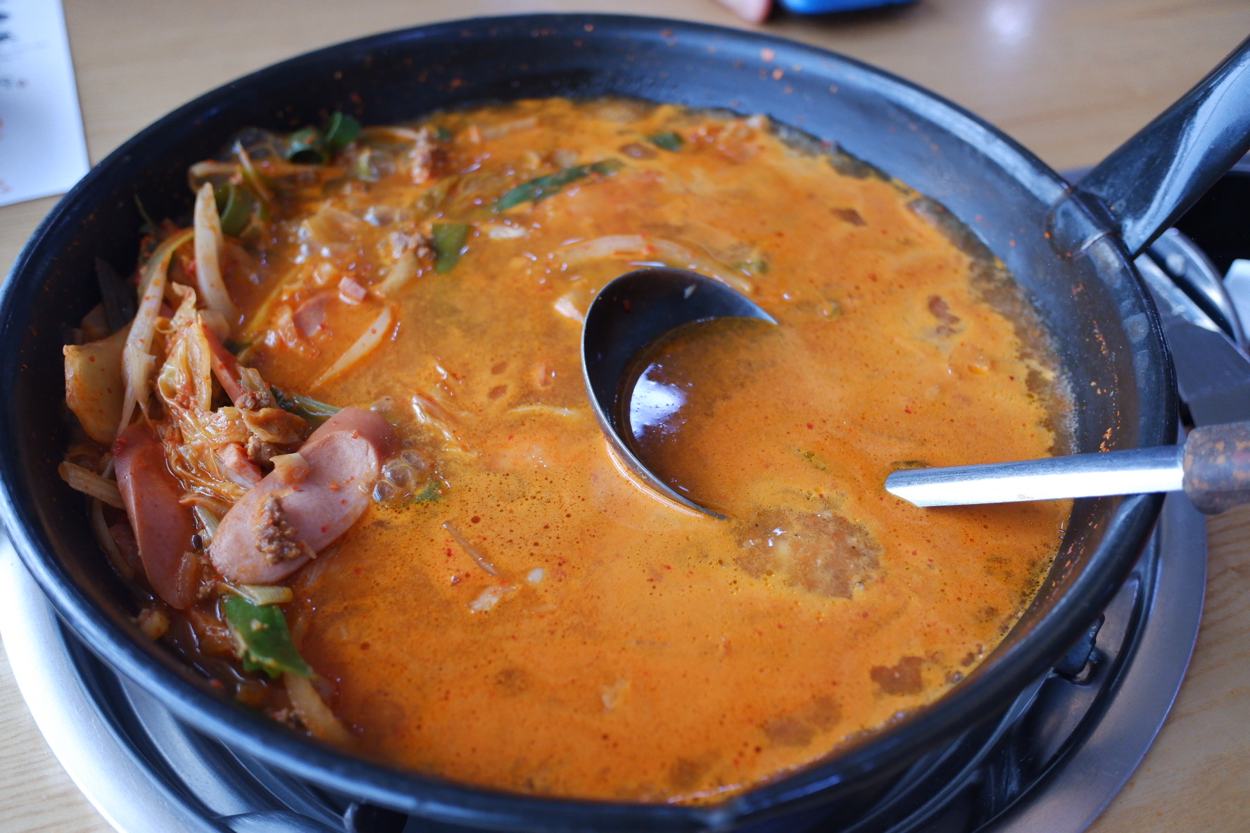 저희는 부대찌개 2인분을 주문했고, 절반정도 먹은 다음에 라면사리를 주문했습니다.
