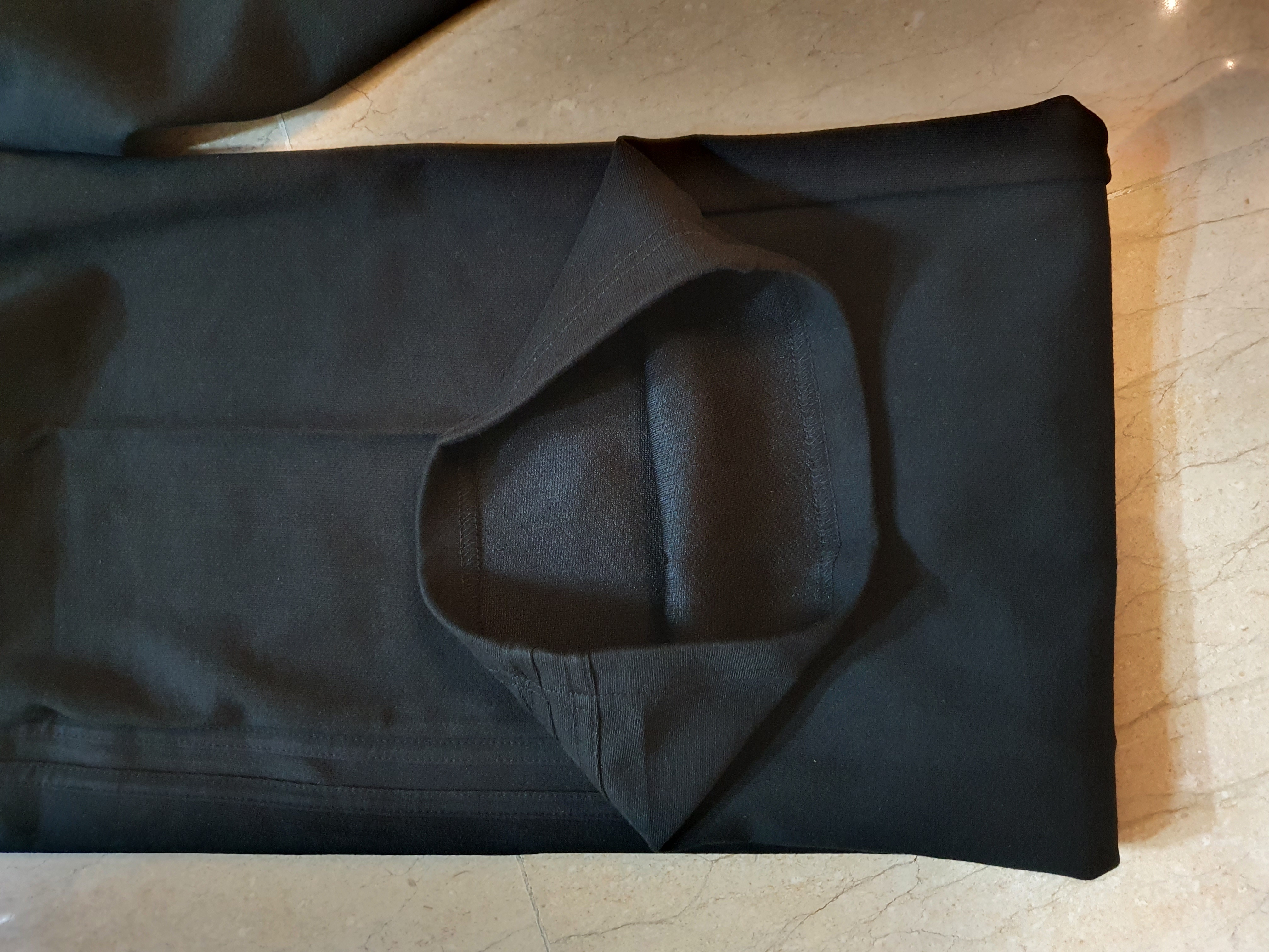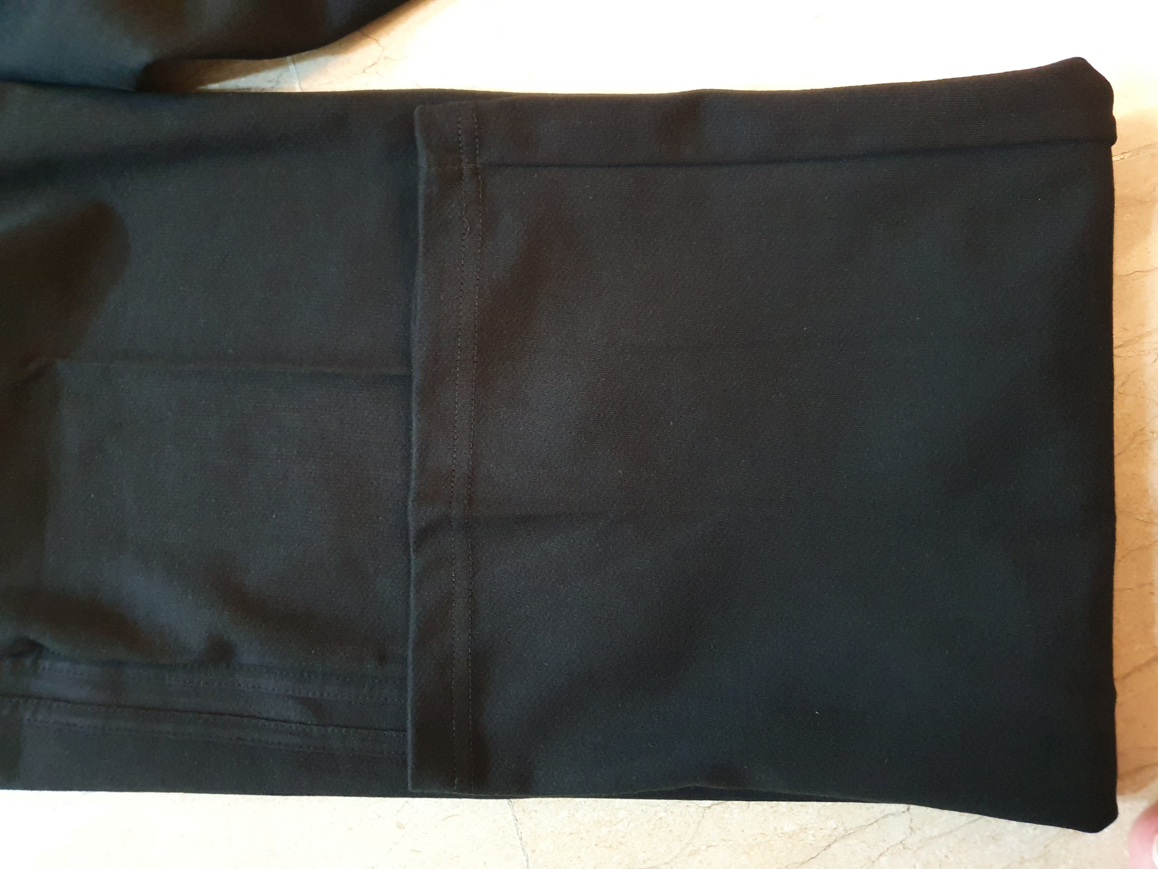 바지 밑단 디테일입니다. 2중으로 박음질이 되어 있고, 일자핏입니다.