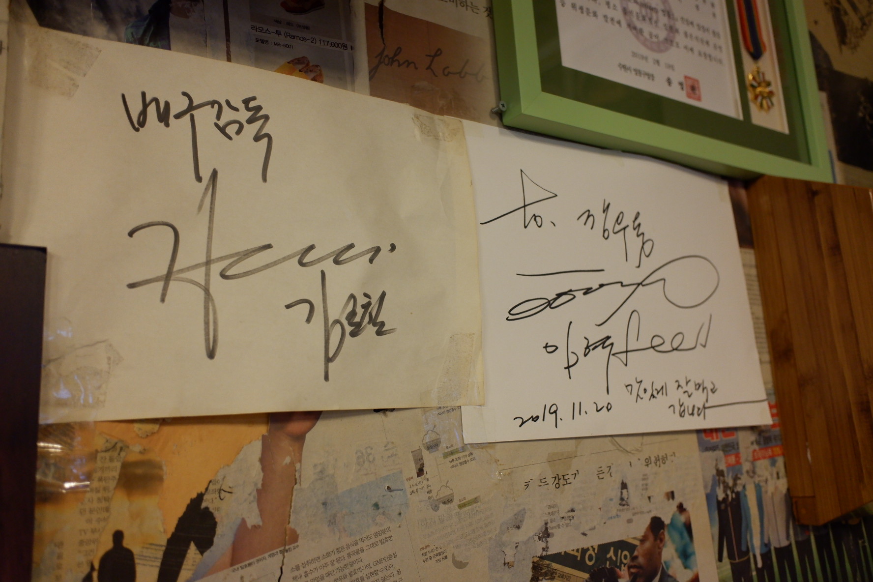 이곳 내부는 특이하게 신문지를 벽지로 사용했습니다. 메뉴는 아주 간단하게 우동, 어묵, 만두가 있습니다. 안주로는 우동과 어묵탕을 많이 주문하고 식사로는 우동과 만두를 많이 주문합니다.