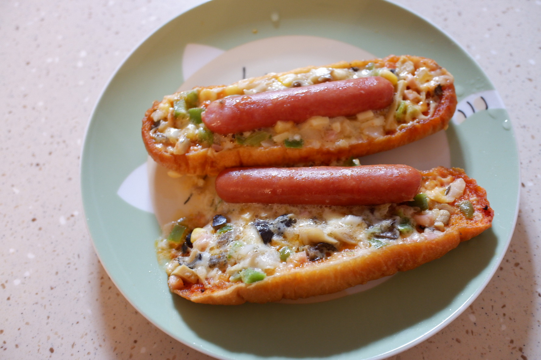 약간 많이 익은 느낌은 있지만 그래도 피자빵보다 맛있었어요. ㅋㅋㅋ 개인 기호에 맞게 케쳡를 뿌려 먹어도 괜찮을 것 같아요.