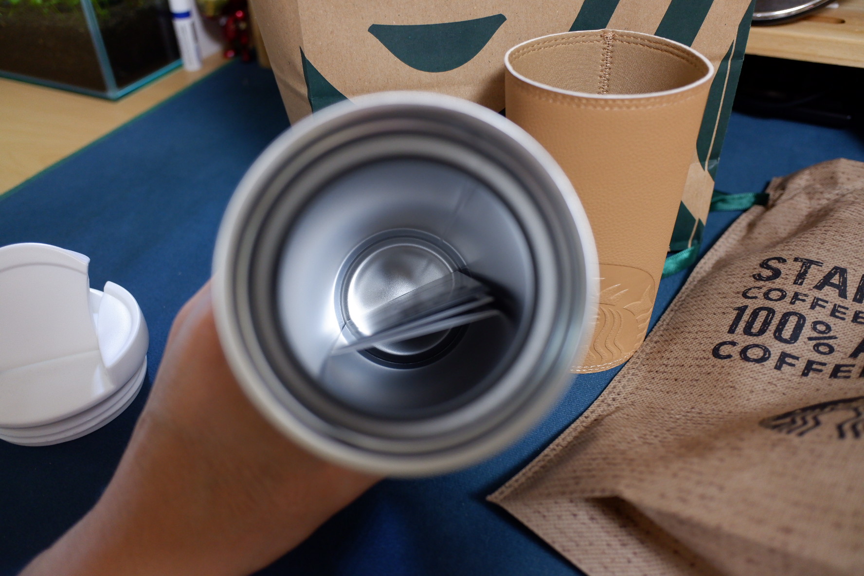 가죽 손잡이를 빼면 스타벅스 글자가 나와요.