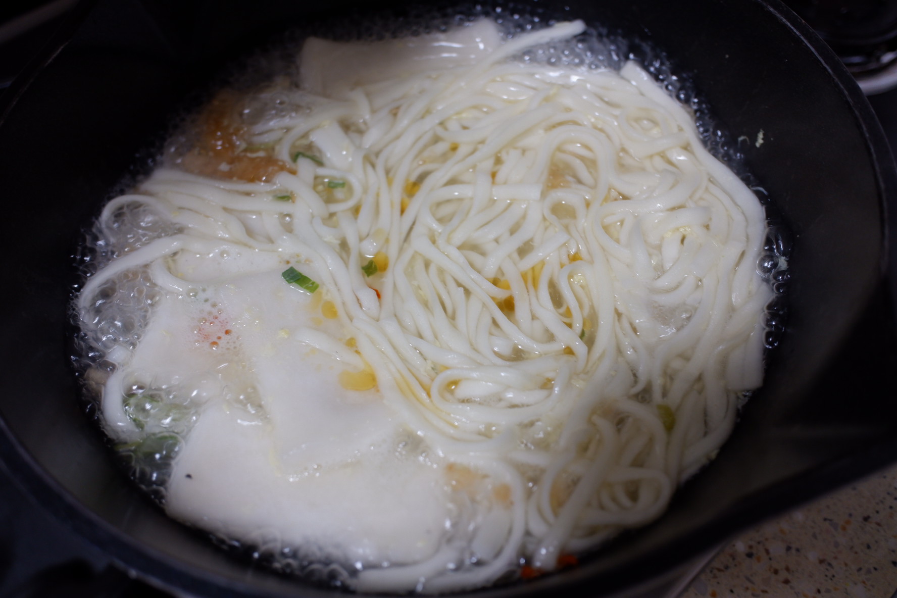 처음에는 그냥 어묵이 들어간 우동이겠거니 했습니다. 근데 면이 정말 이상하더라고요.