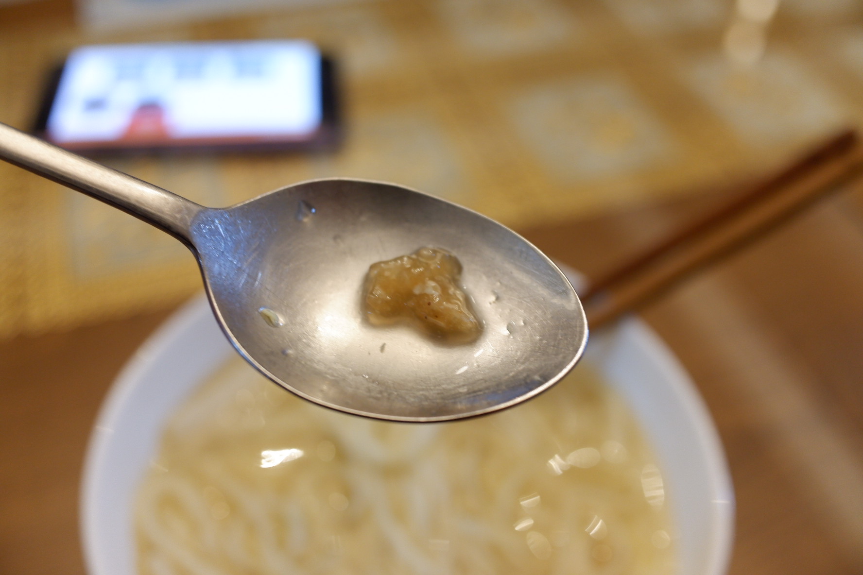 먹다보면 이렇게 전분이 뭉쳐서 덩어리가 생긴게 있는데요. 보일때마다 풀어서 먹었어요. 이게 분말스프이기 때문에 엄청 짜요. 저거 그냥 먹으면 짜서 ㅋㅋ 풀어줘야해요.