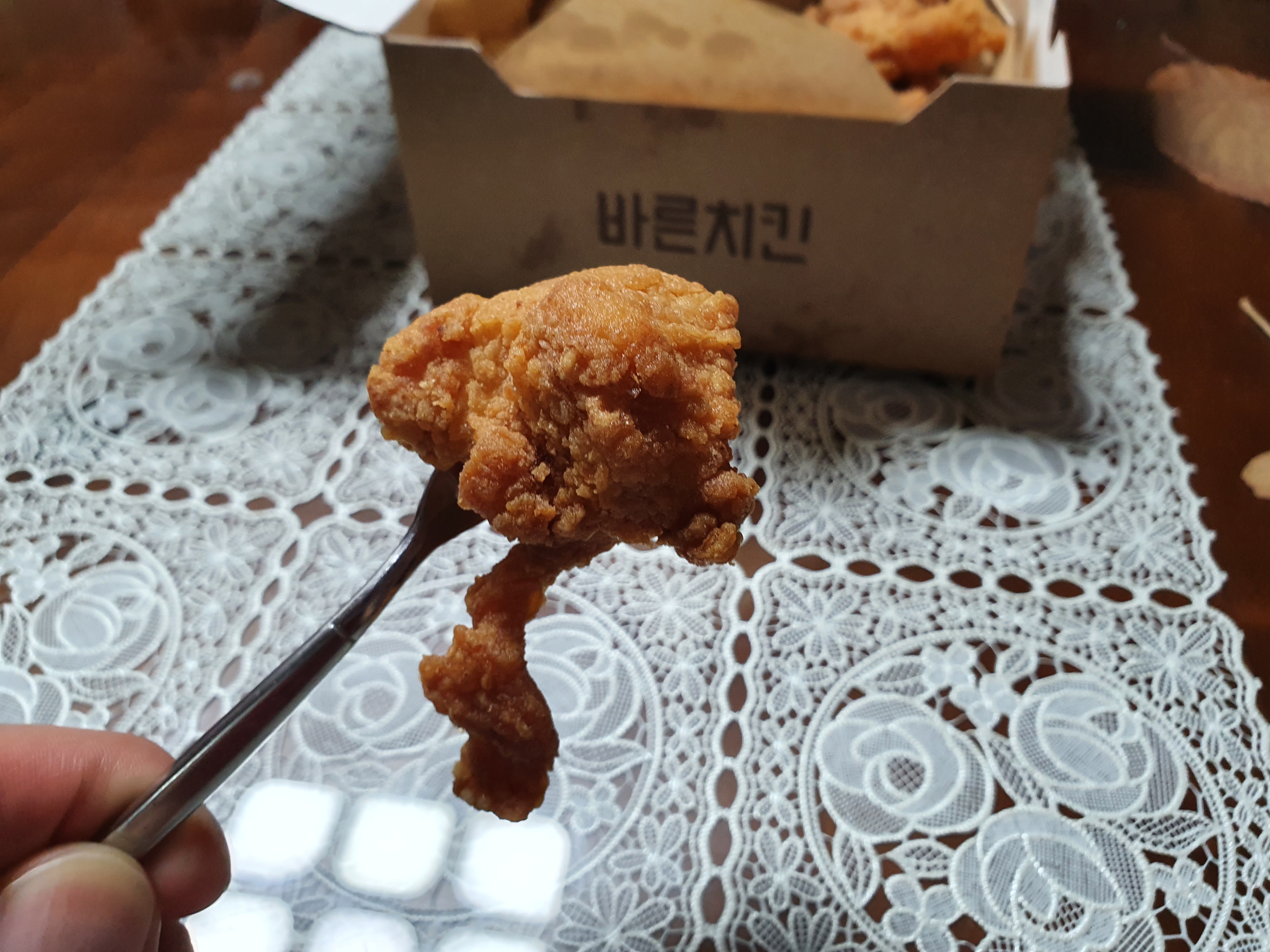 치킨이 정말 색도 깨끗하더라고요. 원래 이런색이구나 ㅋㅋ