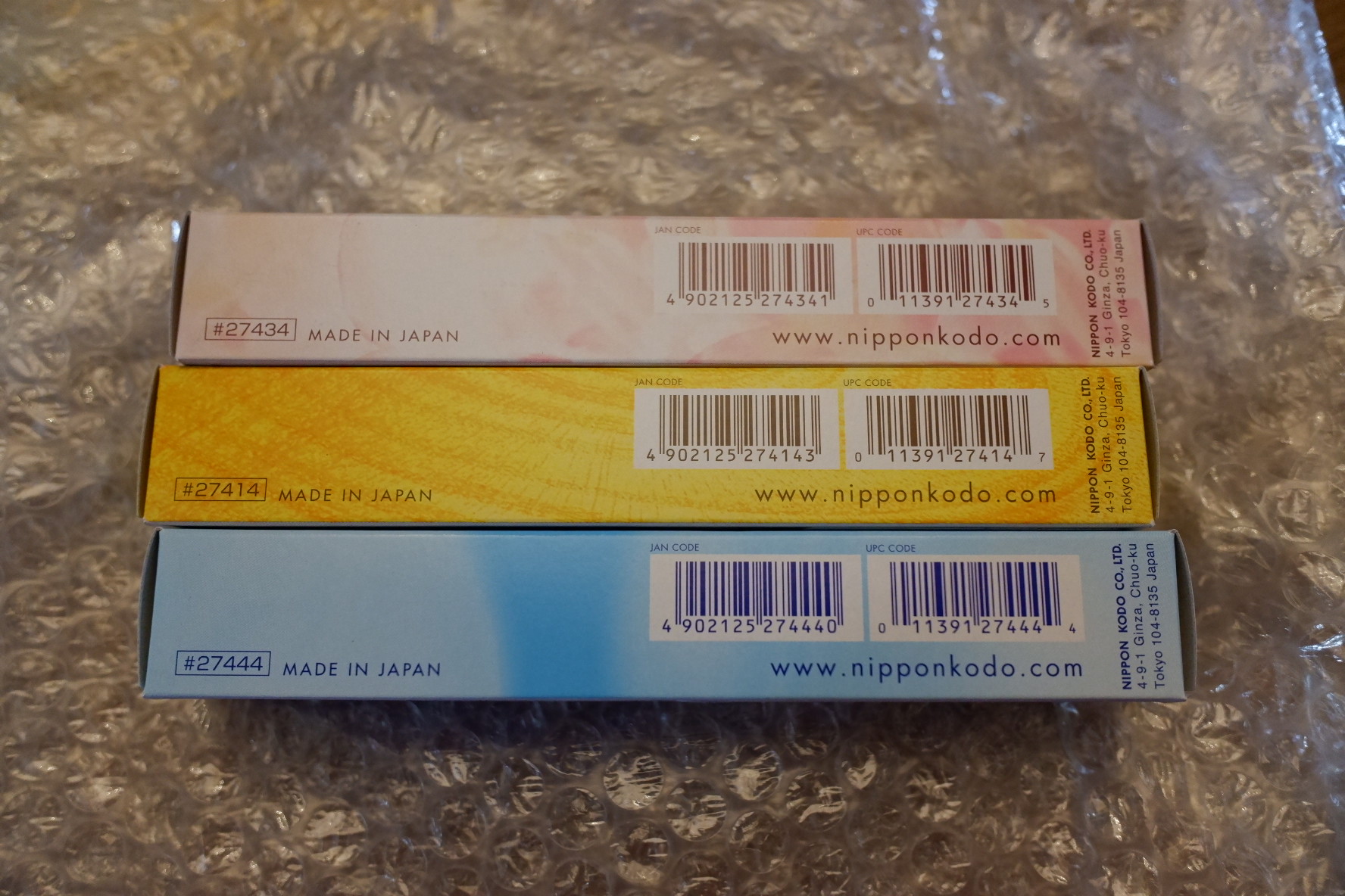 이번에 구매한 향은 총 3가지인데요. 해당 제품들은 일본 제품입니다. 인도 인센스도 있긴 하지만, 향이 너무 강하다는 의견이 있어서 저는 조금 더 은은한 선향을 구매했고, 지금까지 사용하면서 향이 너무 진하다거나 거부감이 생기는 향은 아니더라고요.