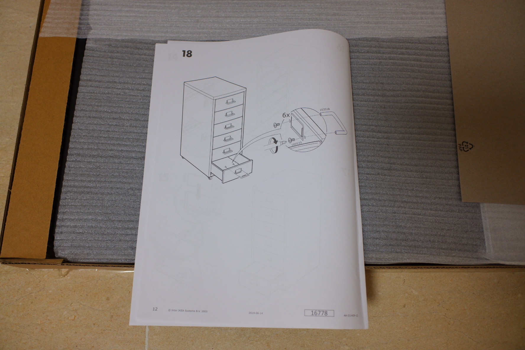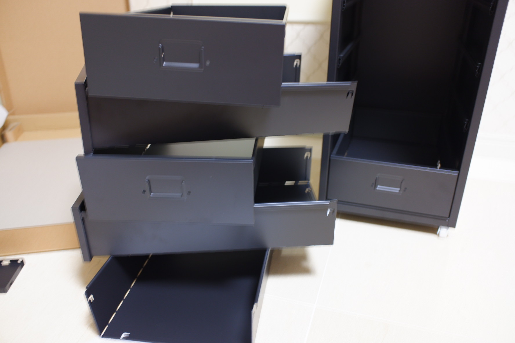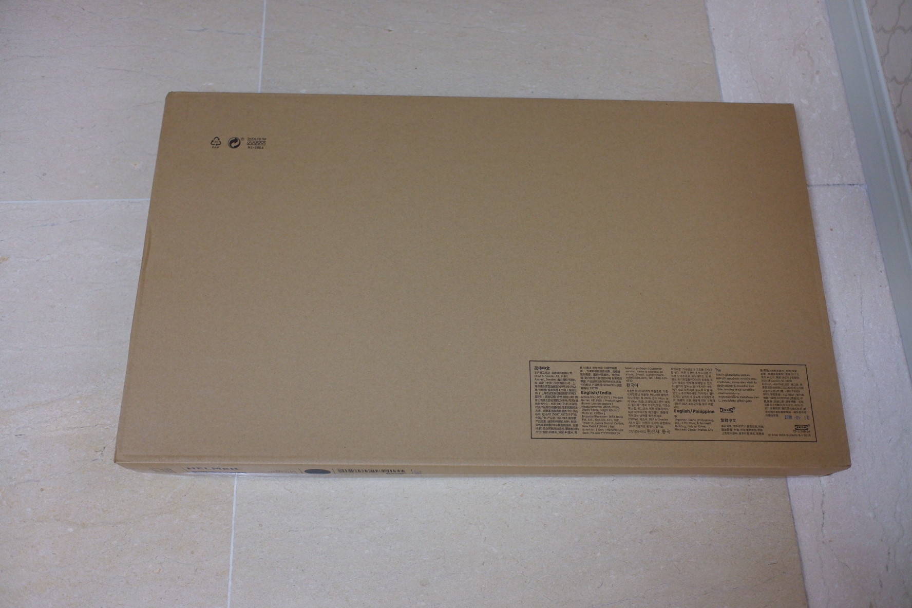 이케아 제품은 대부분 조립식이기 때문에 이렇게 부피가 매우 작아요. 하지만 철제 서랍장이기 때문에 무게가 조금 나가요.