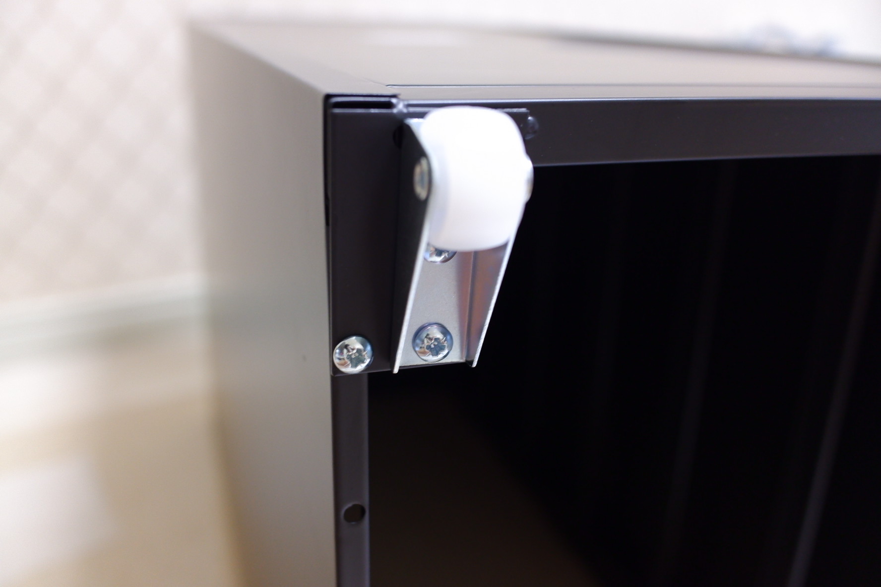 서랍장은 바퀴가 달려서 이동식으로 사용이 가능하기 때문에 4방향 모두 나사를 조이고 바퀴를 달아주게 됩니다.