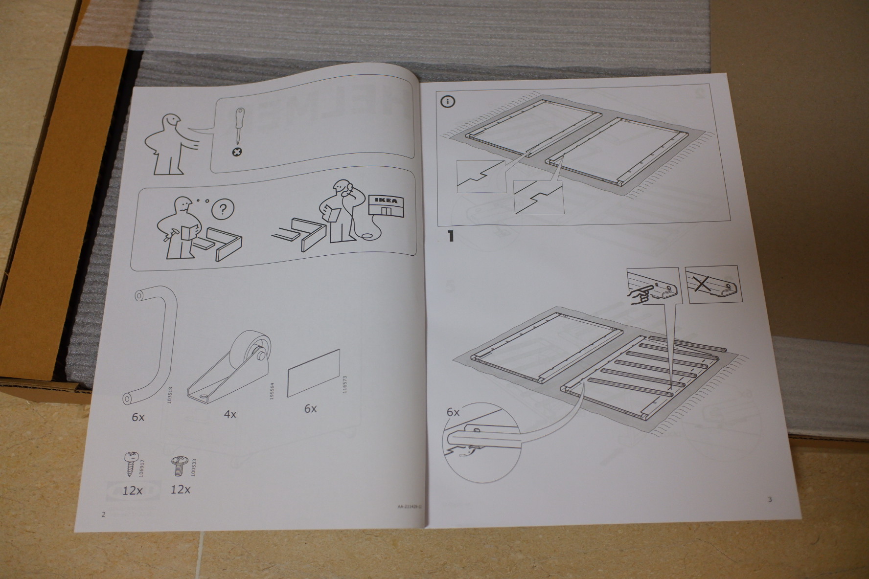 안에는 설명서와 함께 조립에 필요한 부품이 있습니다.