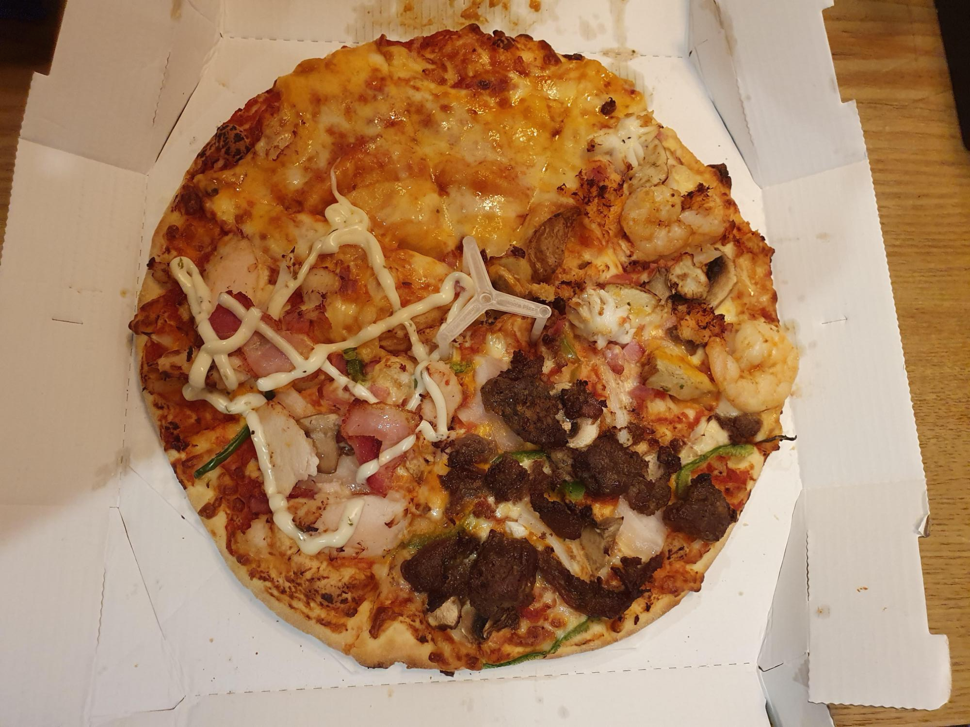 그래도 맛은 있네요. 베이컨 감자, 불고기, 치즈, 해물 이렇게 4가지 맛이 있어요. 도우가 얇고 맛있어요.